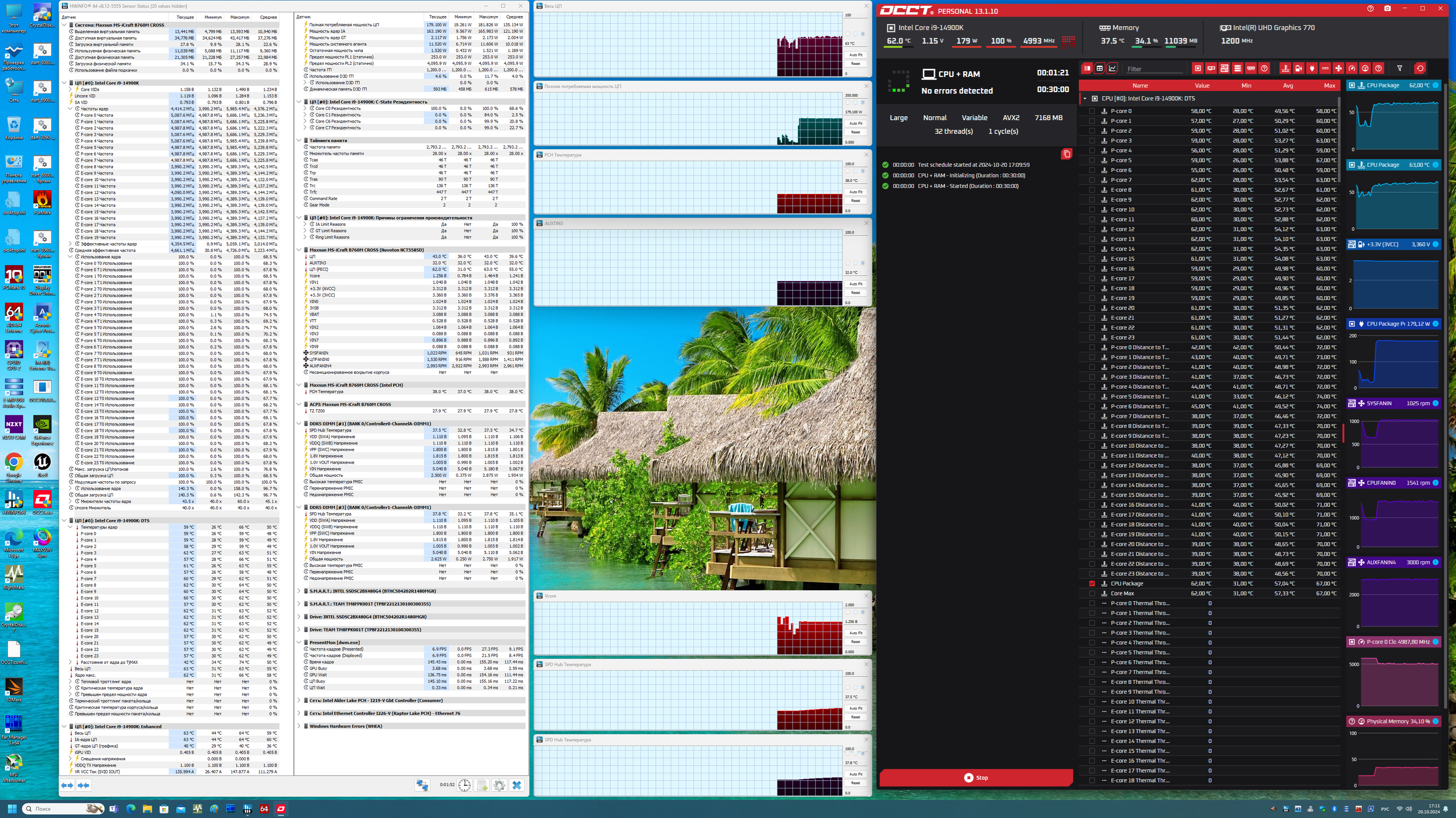 Скажу, что авторазгон не самый высокий, но ведь оно и логично: система по умолчанию определяет возможности питания матплаты, а в данном случае система питания среднего уровня (да и питание процессора идет по схеме 4+8, а не 8+8). К тому же мы все понимаем, что подобные материнские платы явно не для самых топовых и требовательных процессоров, к которым относится Core i9-14900K. Так что для такой платы авторазгон – более чем нормальный.