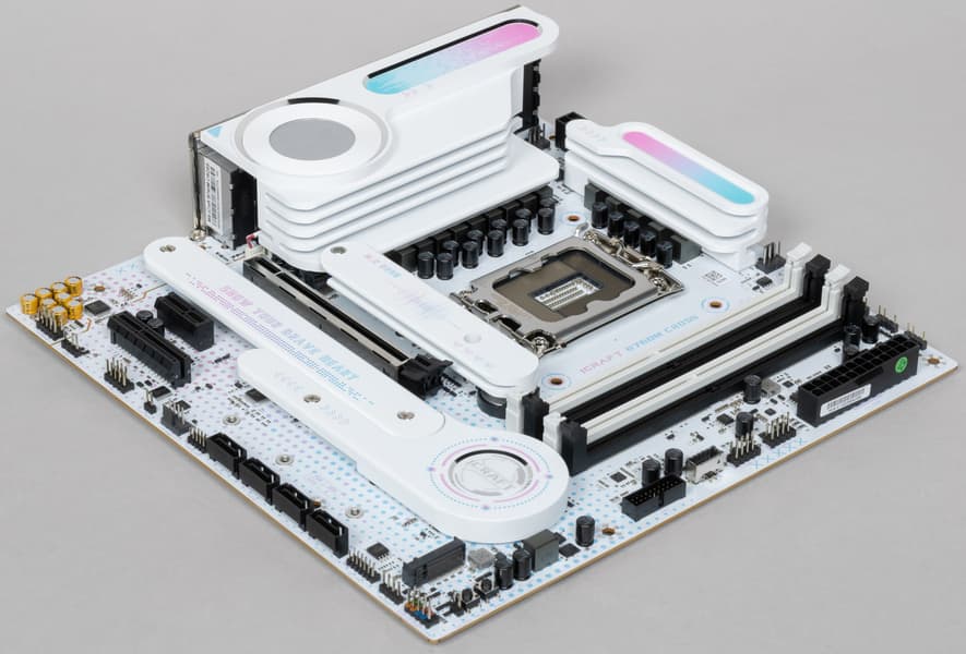 Заметим, что плата прекрасно работает даже с топовыми процессорами Intel Core 14-го поколения. У нее 16 USB-портов, включая 7 быстрых USB 3.2, а также один самый быстрый USB 3.2 Gen2×2 в виде порта Type-C на задней панели. Есть слот PCIe х16, получающий от процессора 16 линий PCIe версии 5.0, а также по одному PCIe x4 и PCIe x1. У платы есть 3 слота M.2: один из них подключен к процессору, остальные — к чипсету B760, во всех случаях — линиями PCIe 4.0. Еще у этой модели 4 порта SATA и 4 разъема для вентиляторов. Аудиотракт получил хорошую оценку, хотя основан на стареньком уже кодеке Realtek ALC897.