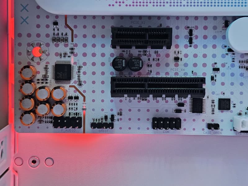 На кожухе, прикрывающем радиатор VRM, идущий вдоль заднего блока портов, имеется подсветка.