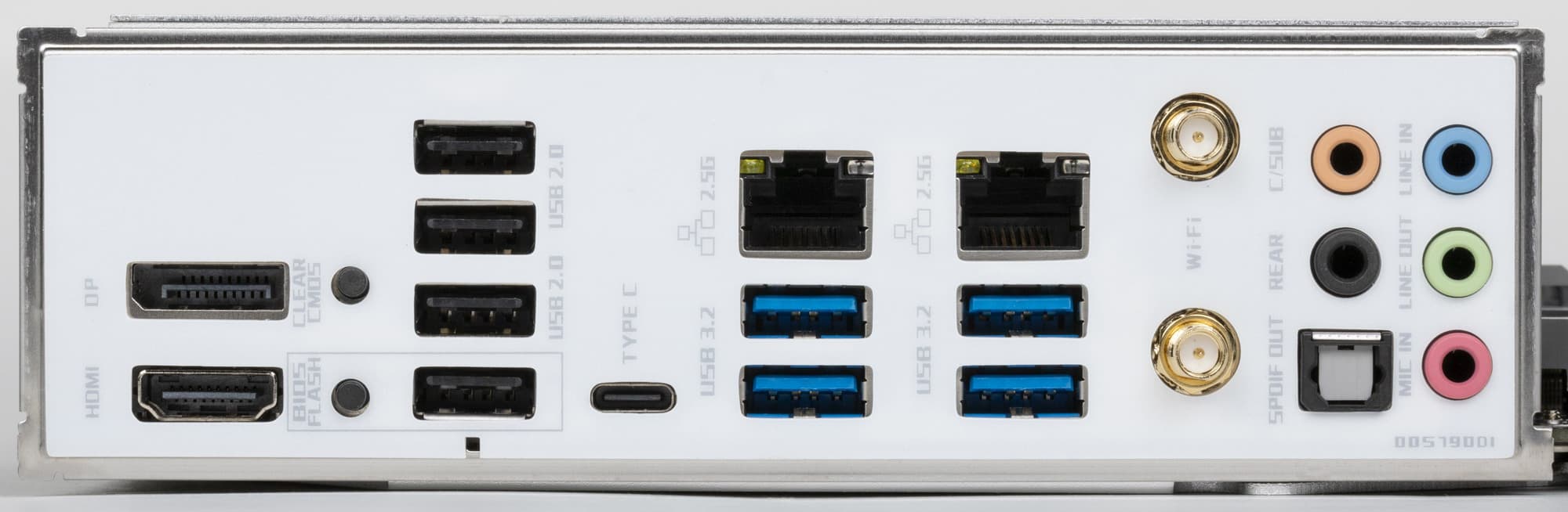 | Разъемы на задней панели | 1 × USB 3.2 Gen2x2 (Type-C) 4 × USB 3.2 Gen2 (Type-A) 4 × USB 2.0 (Type-A) 2 × RJ-45 2 × разъема для крепления антенны беспроводной связи 5 аудиоразъемов типа миниджек 1 × оптический S/PDIF 1 × кнопка сброса CMOS 1 × кнопка «холодной» прошивки BIOS 1 × DP-out 1 × HDMI-out |
