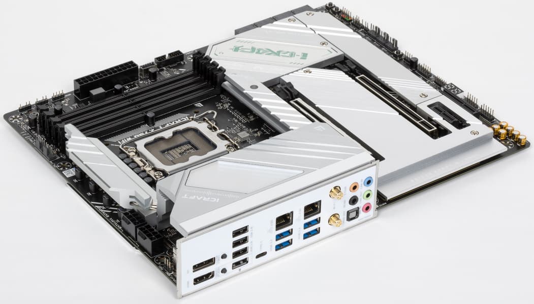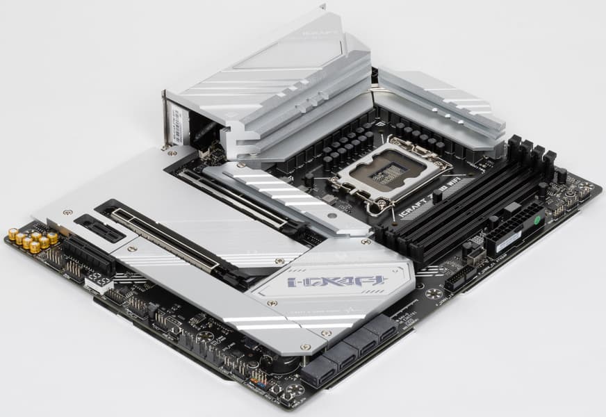 У Maxsun iCraft Z790 WiFi имеется 15 портов USB разных видов, включая 2 очень быстрых USB 3.2 Gen2×2, 4 USB 3.2 Gen2 и 2 USB 3.2 Gen1. Плата предлагает 2 слота PCIe х16, один из которых получает от процессора 16 линий PCIe версии 5.0, а другой работает в режиме x4 (подключен к чипсету), плюс слоты PCIe x1 и PCIe x4. Также у платы 4 слота M.2: первый подключен напрямую к процессору, три других — к чипсету, все — линиями PCIe 4.0. Плата имеет 6 разъемов для вентиляторов и 4 порта SATA.
