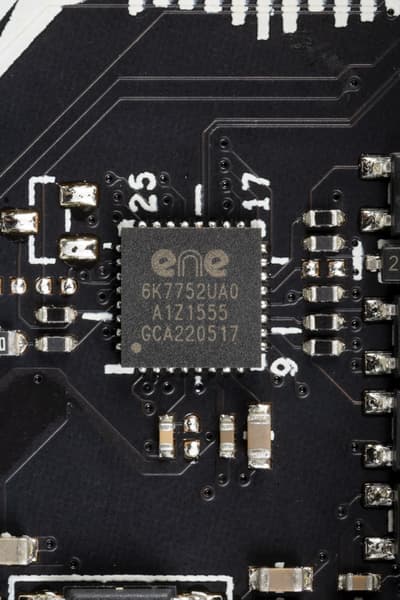 - 7 портов USB 2.0/1.1: 4 реализованы через контроллер Terminus FE1.1S (на него потрачена 1 линия USB 2.0 от Z790) и представлены на задней панели портами Type-A (черного цвета); другие 3 реализованы через Z790 и представлены двумя внутренними разъемами (один на 2 порта, второй на 1 порт).