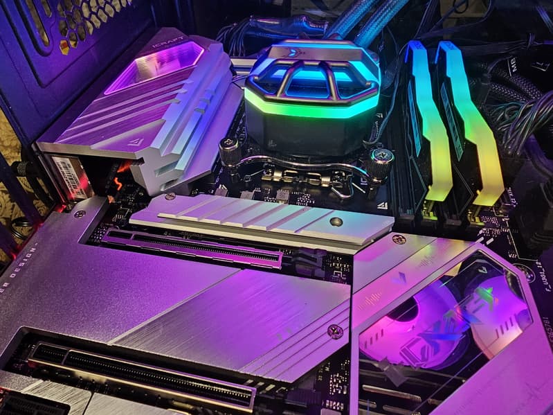 Система питания процессора очень мощная, способная обеспечить работу любых совместимых процессоров с приличным запасом на разгон. И сетевые возможности прекрасные: два проводных контроллера 2,5 Гбит/с и один современный беспроводной. В числе плюсов платы можно упомянуть красивую штатную подсветку и возможности для подключения дополнительных RGB-устройств.