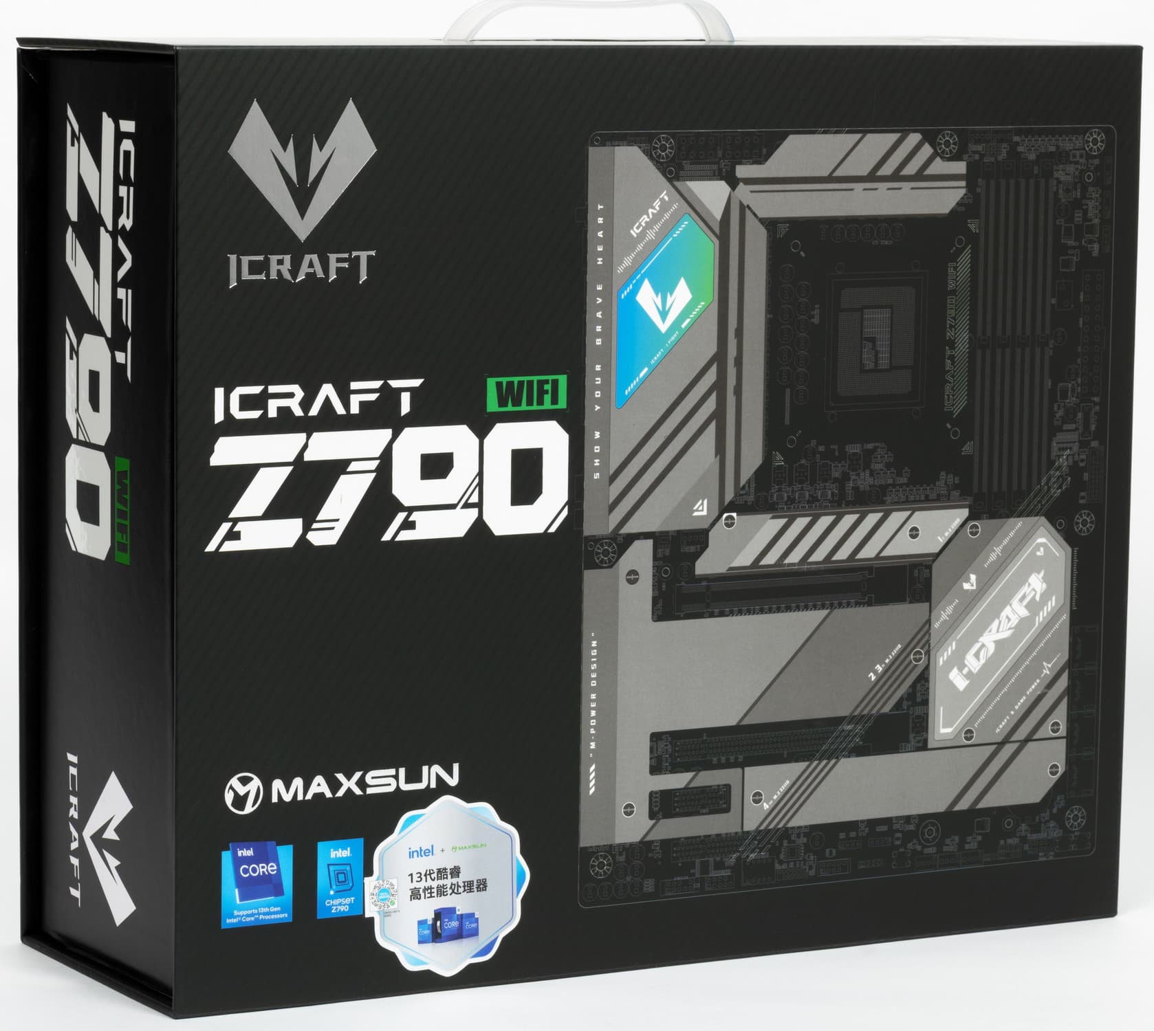 Итак, перед нами Maxsun iCraft Z790 WiFi. Это по сути флагманский продукт данного производителя.