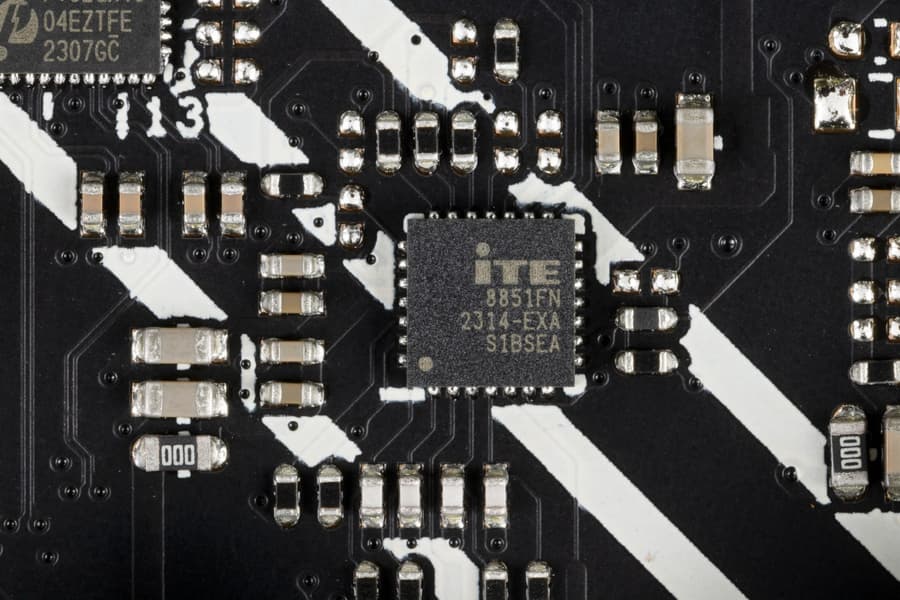 - 2 порта USB 3.2 Gen2x2: все реализованы с помощью Z790 и двух контроллеров ITE IT8851 и представлены: внутренним портом Type-C (для подключения к соответствующему разъему на передней панели корпуса) и одним портом Type-C на задней панели;