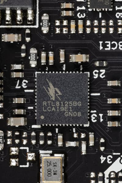 Материнская плата оснащена средствами связи отлично. Имеется два(!) скоростных Ethernet-контроллера Realtek RTL8125BG, каждый из которых способен работать по стандарту 2,5 Гбит/с.