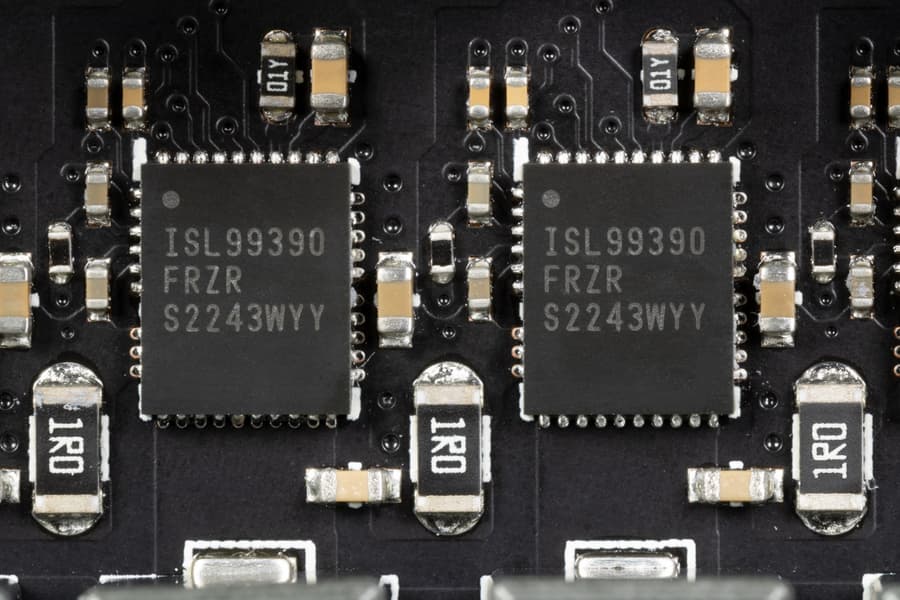 Каждый канал фазы VCore и iGPU имеет суперферритовый дроссель и ISL99390 DrMOS от Renesas на 90 А.