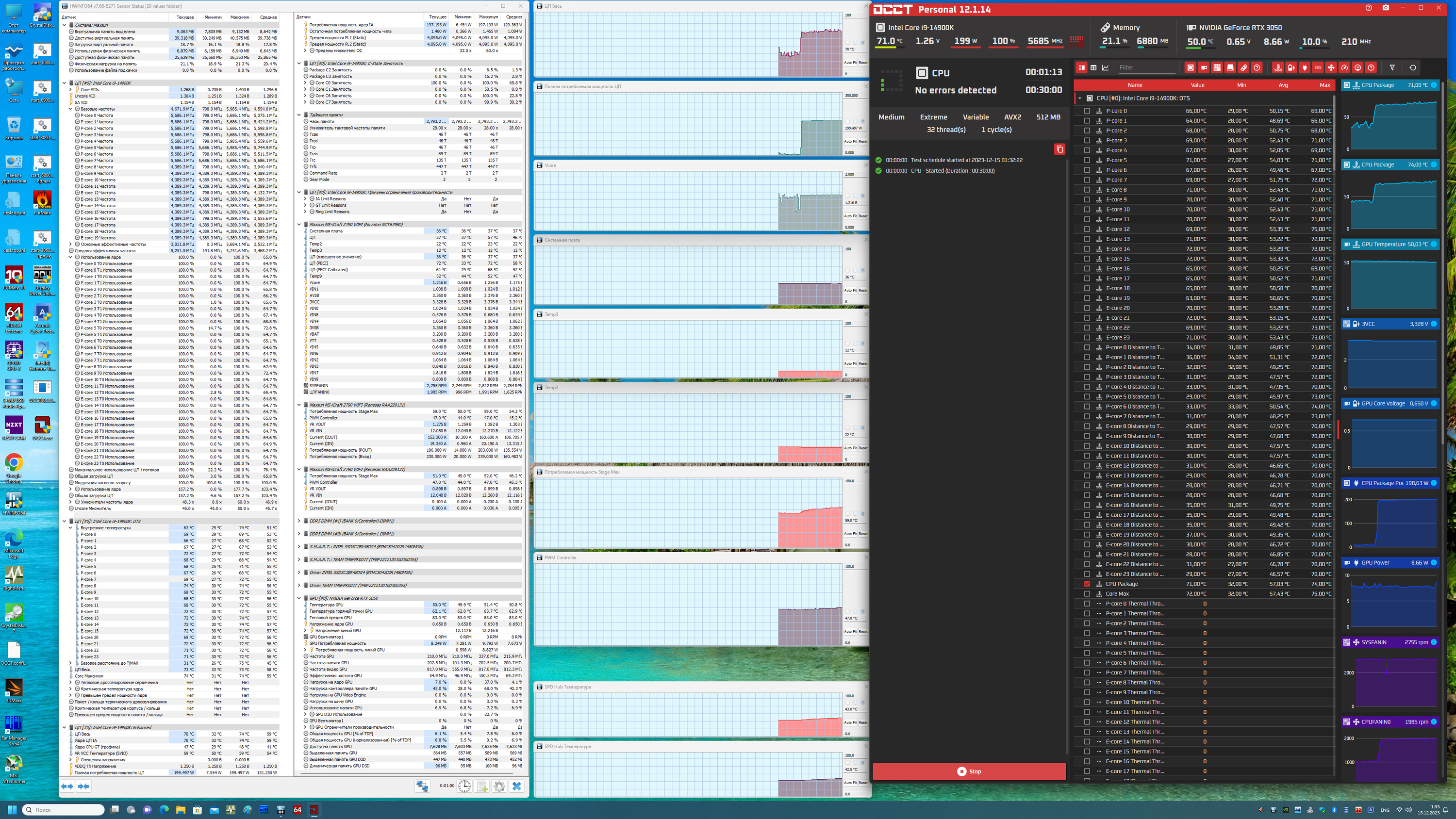 Запускаем все в режиме по умолчанию. Затем нагружаем стресс-тестом OCCT (настройки по умолчанию).