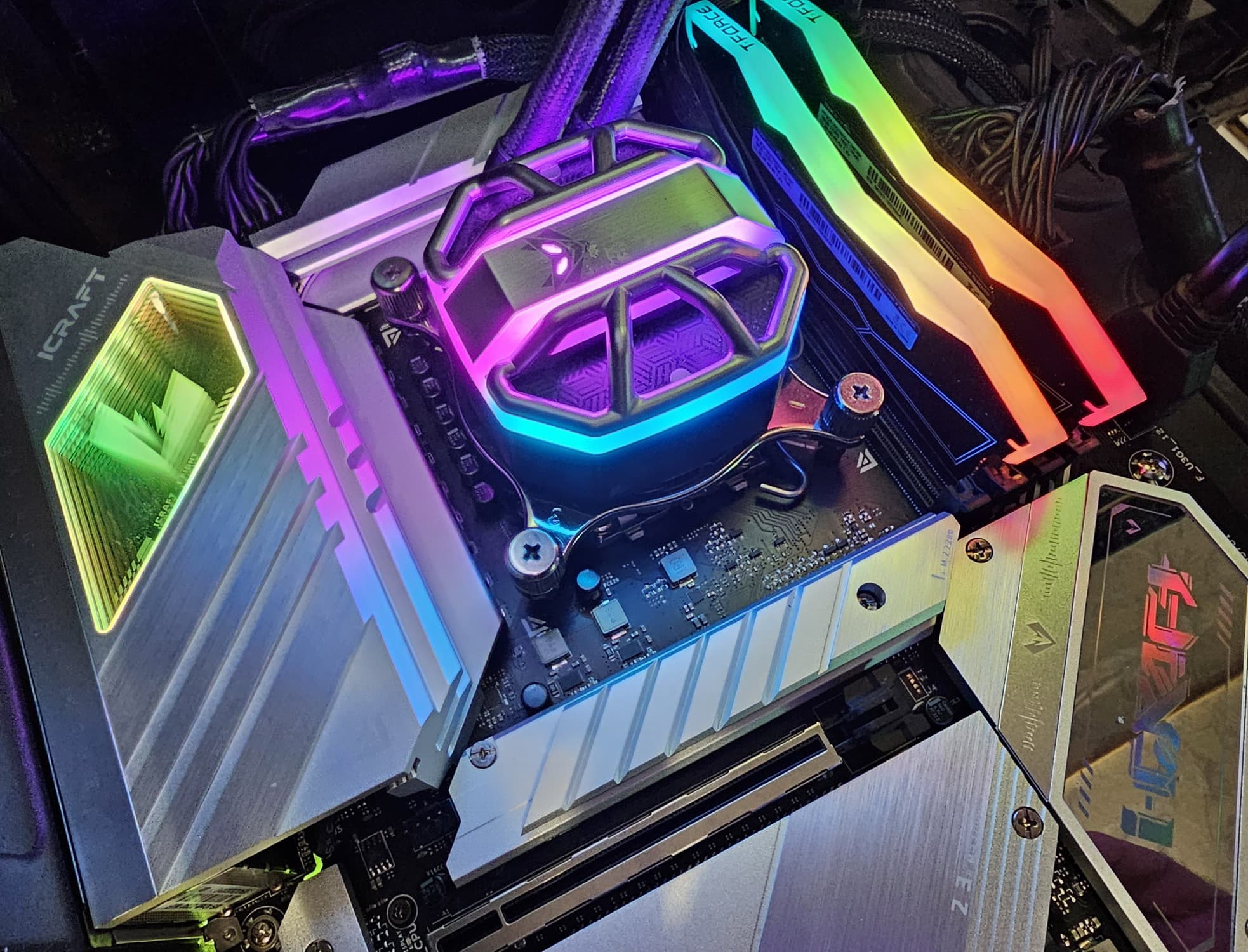 Maxsun iCraft Z790 WiFi — красивая материнская плата на топовом чипсете Intel Z790. По возможностям она практически не уступает аналогам именитых и хорошо известных производителей, но при этом стоимость платы раза в 2 ниже, чем у флагманских моделей на том же чипсете: 25-30 тысяч рублей на момент подготовки обзора.