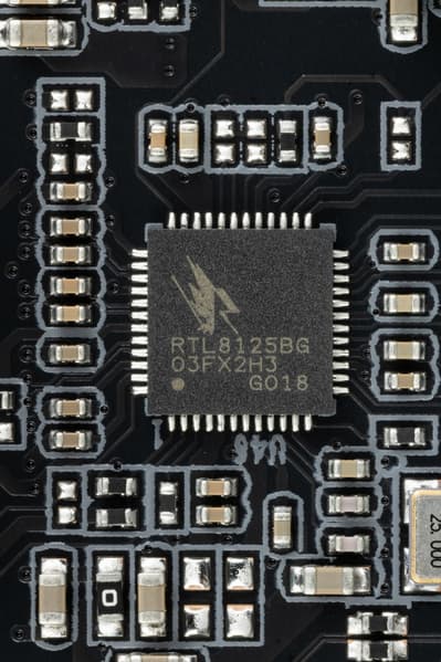 Материнская плата оснащена средствами связи прилично. Имеется один скоростной Ethernet-контроллер: Realtek RTL8125BG, способный работать по стандарту 2,5 Гбит/с.
