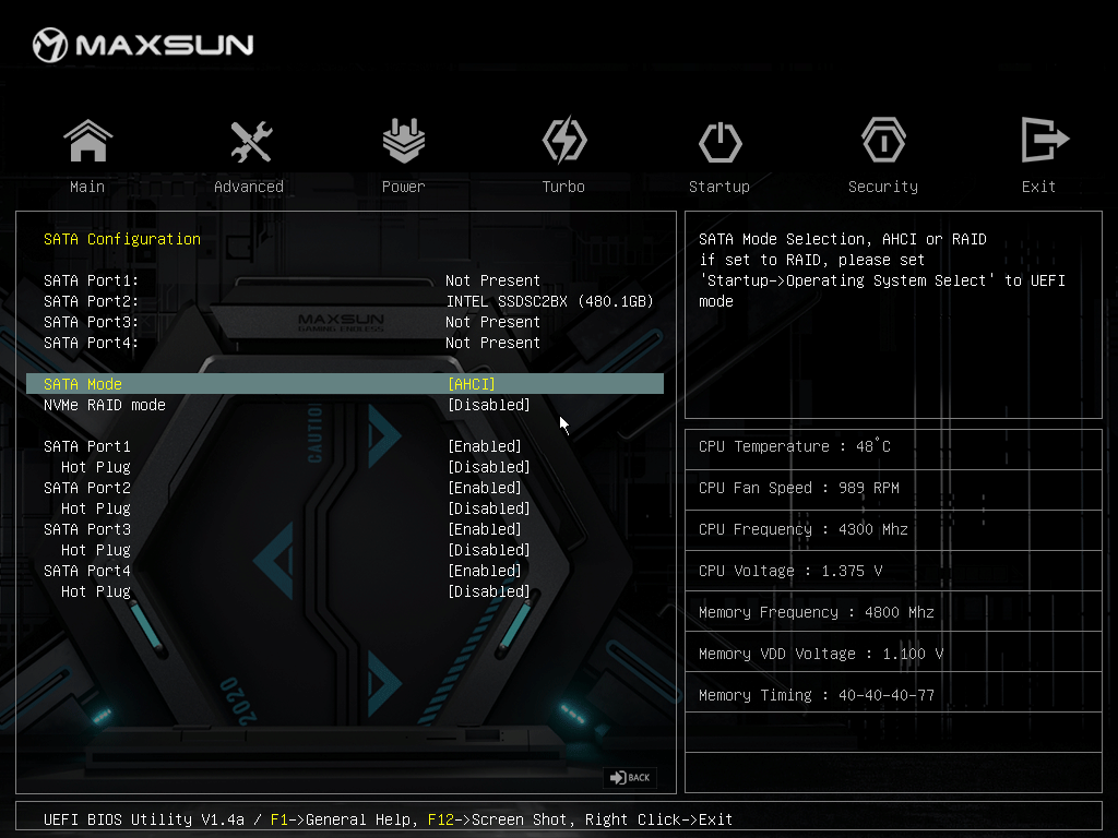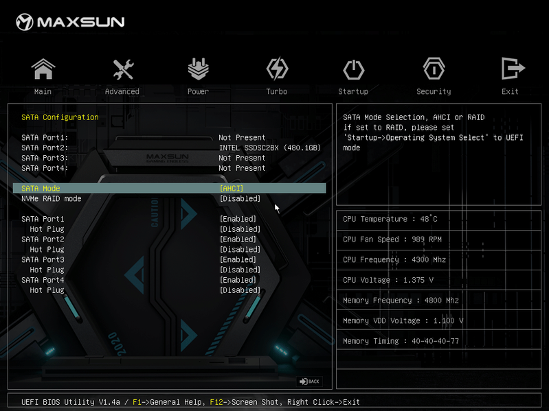 Как мы видим, охлаждение чипсета организовано с помощью отдельного небольшого радиатора. VRM-секция имеет свой и только один радиатор для охлаждения только 9 фаз из 12-ти. Почему остальные оставлены без охлаждения – вопрос к инженерам Maxsun.