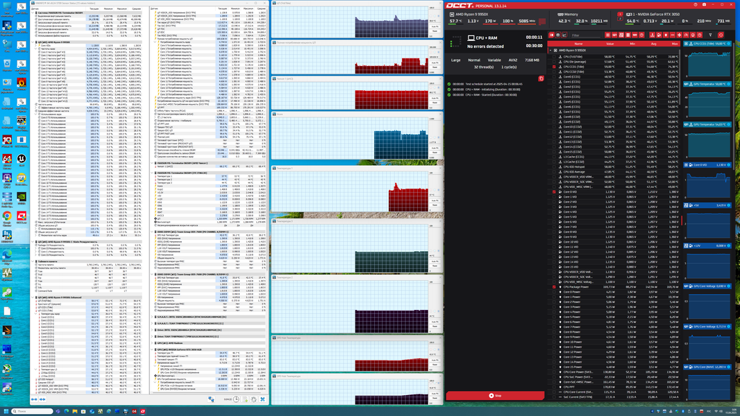 Запускаем все в режиме по умолчанию. Затем нагружаем стресс-тестами OCCT (CPU+RAM).