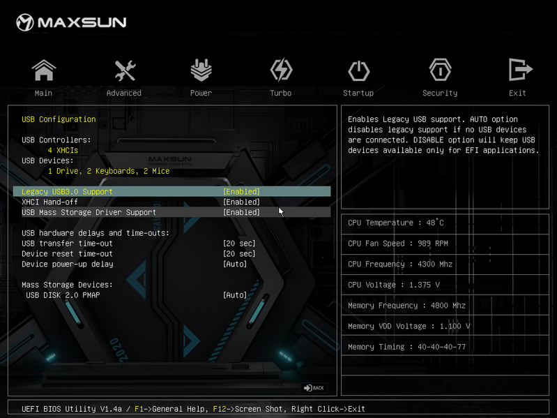 Система питания способна обеспечить работу любых совместимых процессоров с некоторым запасом на разгон, однако очевидно, что позиционирование платы предполагает использование с CPU среднего и начального уровней, которые потребляют мало, так что система питания не перегреется. При этом надо отметить, что для накопителей в слотах M.2 охлаждение не предусмотрено вовсе, а у преобразователя питания процессора охлаждается лишь часть компонентов. В числе плюсов можно упомянуть широкие возможности для подключения дополнительных RGB-устройств.