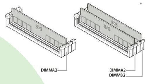 Для установки модулей памяти на плате Maxsun имеется четыре DIMM-слота (для работы памяти в Dual Channel в случае использования всего 2 модулей их следует устанавливать в А2 и B2.