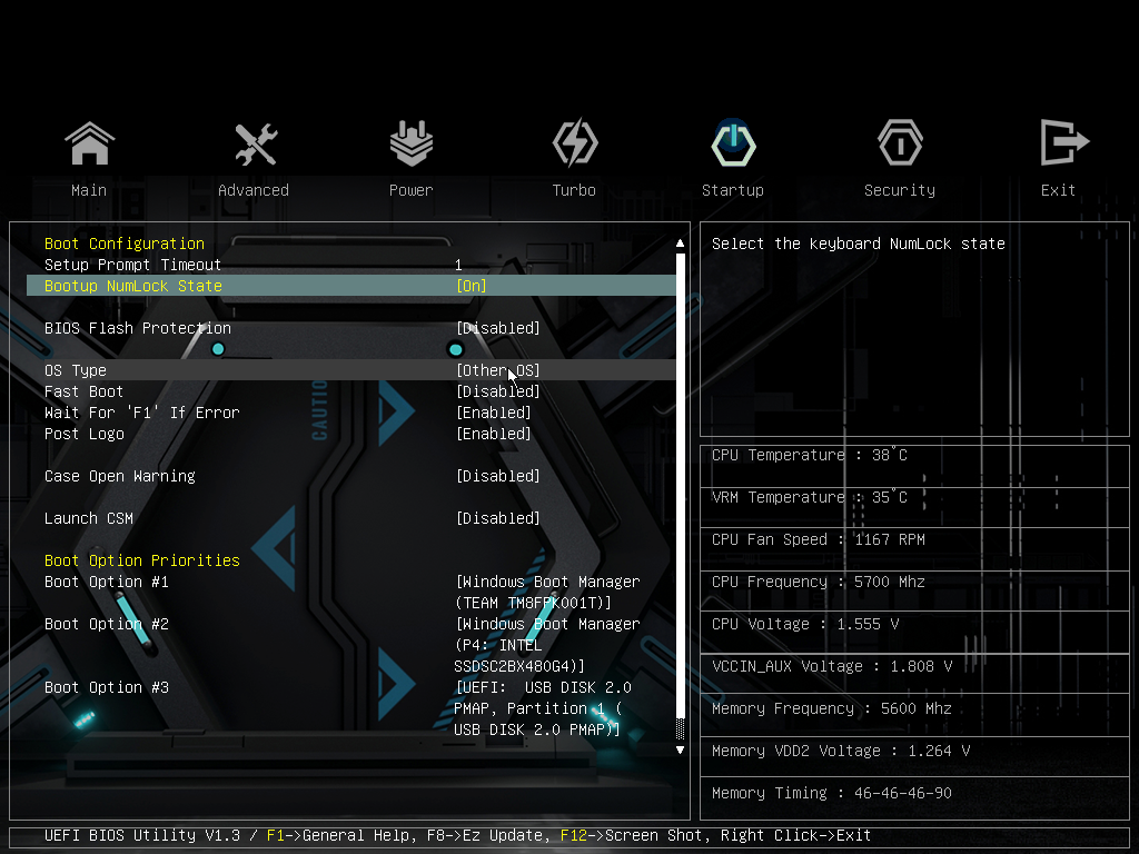 Формально имеется поддержка памяти DDR5 до 5600 МГц, однако всем хорошо известно, и производители материнских плат это активно рекламируют: через XMP-профили сейчас можно использовать модули с ПСП до 7000 и выше МТ/с. В частности данная плата поддерживает модули с ПСП до 7600 МТ/с.