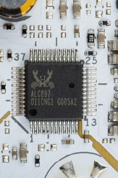 Для относительно простой материнской платы производитель выбрал уже давно всем известный и устаревший кодек Realtek ALC897. Он в целом обеспечивает вывод звука по схемам до 7.1 с разрешением до 24 бит / 192 кГц.