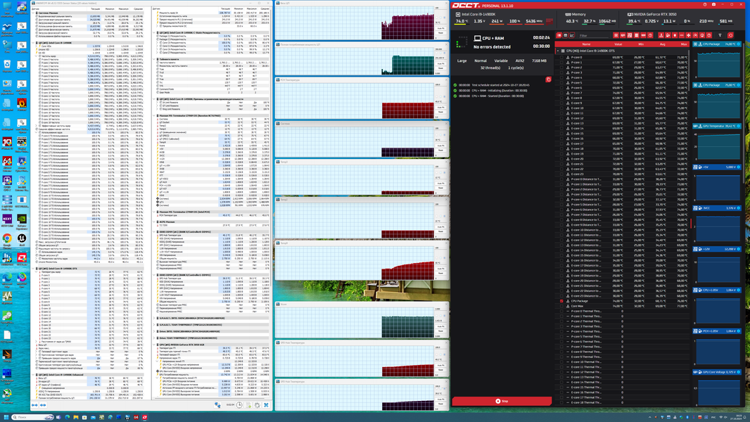 Запускаем все в режиме по умолчанию. Затем нагружаем стресс-тестом OCCT (настройки по умолчанию).