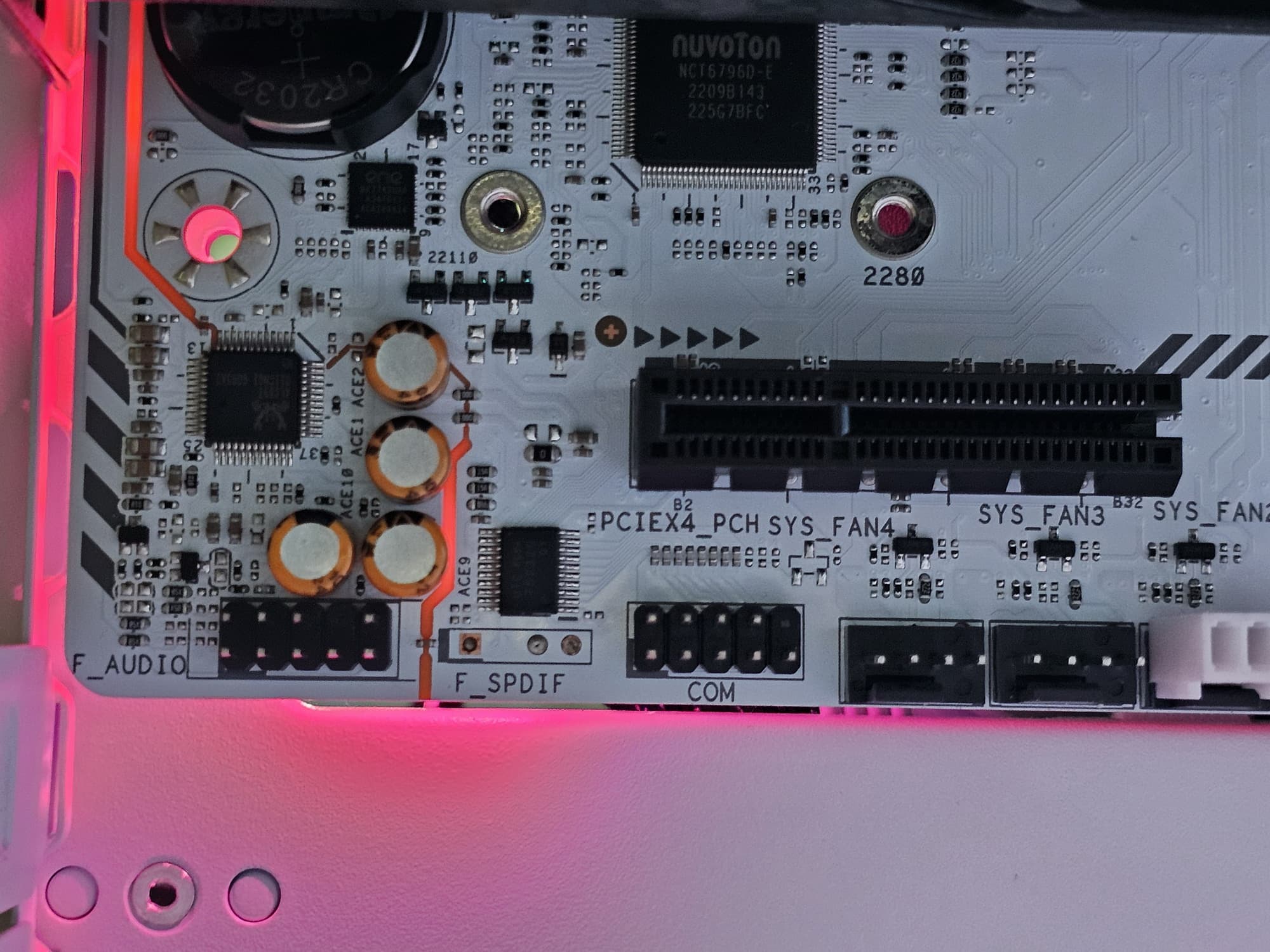 - 2 порта USB 3.2 Gen2x2: все реализованы с помощью Z790 и контроллера PI3EQX2004 от Diodes Inc и представлены: внутренним портом Type-C (для подключения к соответствующему разъему на передней панели корпуса) и одним портом Type-C на задней панели;