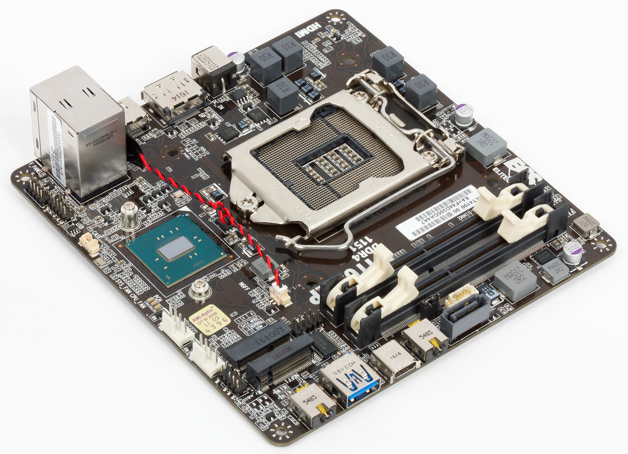 Тем не менее, сохраняются все те же крепежные отверстия, да и задняя панель с портами имеет стандартную же ширину — так что с соответствующей заглушкой плату можно установить даже в полноразмерный АТХ-корпус. Но не нужно, поскольку эти платы также не рассчитаны на работу со стандартными АТХ-блоками питания (хотя могут их и поддерживать) — слишком уж у последних много всяких кабелей, так что даже если сам БП маленький, нет смысла с малой толщиной огород городить: не поместятся. В итоге такие платы ориентированы на внешние БП, аналогичные ноутбучным. Также в них применяются ноутбучные модули памяти SO-DIMM, устанавливаемые параллельно плате (из-за требований к максимальной высоте), и привычные по тем же ноутбукам слоты расширения типа Mini-PCIe, mSATA и M.2. В общем, платформа похожа на ноутбучную, но может использовать любые процессоры — в том числе и настольные (или серверные), устанавливаемые в сокет. Расположение последнего в этих платах тоже стандартизовано, что позволяет использовать объединенные с корпусом, а не отдельные системы охлаждения. Это является особенно актуальным с учетом того, что полноценный «большой» радиатор над процессором тоже не помещается из-за ограничений на высоту, так что все равно имеет смысл тепло снимать и отводить куда-то при помощи тепловых трубок. В общем, получился хороший формат для каких-нибудь моноблоков и прочих встроенных решений.