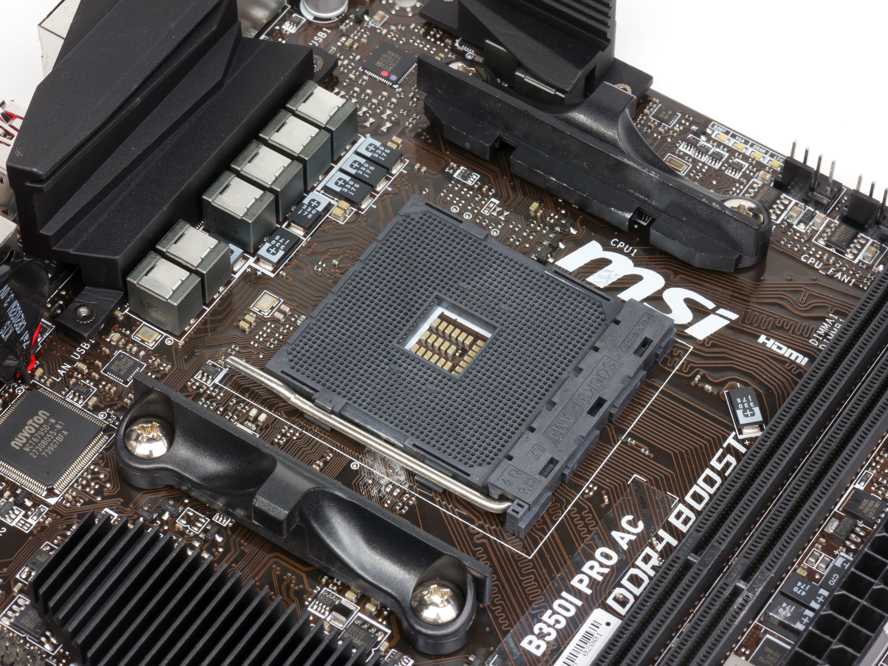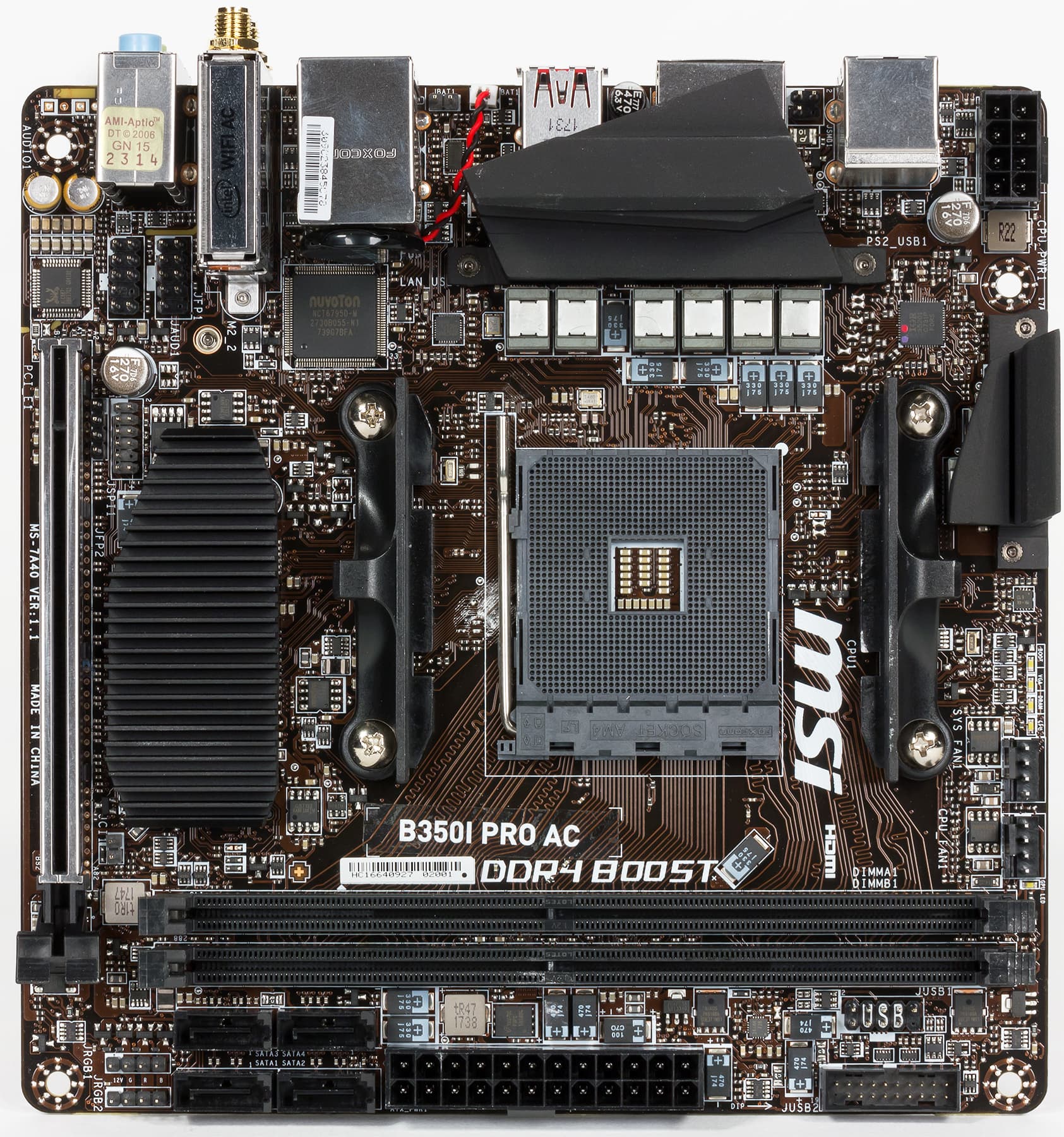 Плата основана на чипсете AMD B350 (с линейкой чипсетов для АМ4 можно познакомиться в соответствующем материале) и поддерживает все соответствующие процессоры AMD, включая и APU нового поколения. Отметим также, что в линейке компактных решений MSI для процессоров AMD эта плата на данный момент является топовой, да и вообще соответствующих моделей очень мало — не сравнить с предложениями для двух версий LGA1151. С другой стороны, MSI был чуть ли не единственным заметным производителем плат Mini-ITX под FM2+, так что, как нам кажется, и ассортимент моделей с АМ4 тоже будет расширяться.