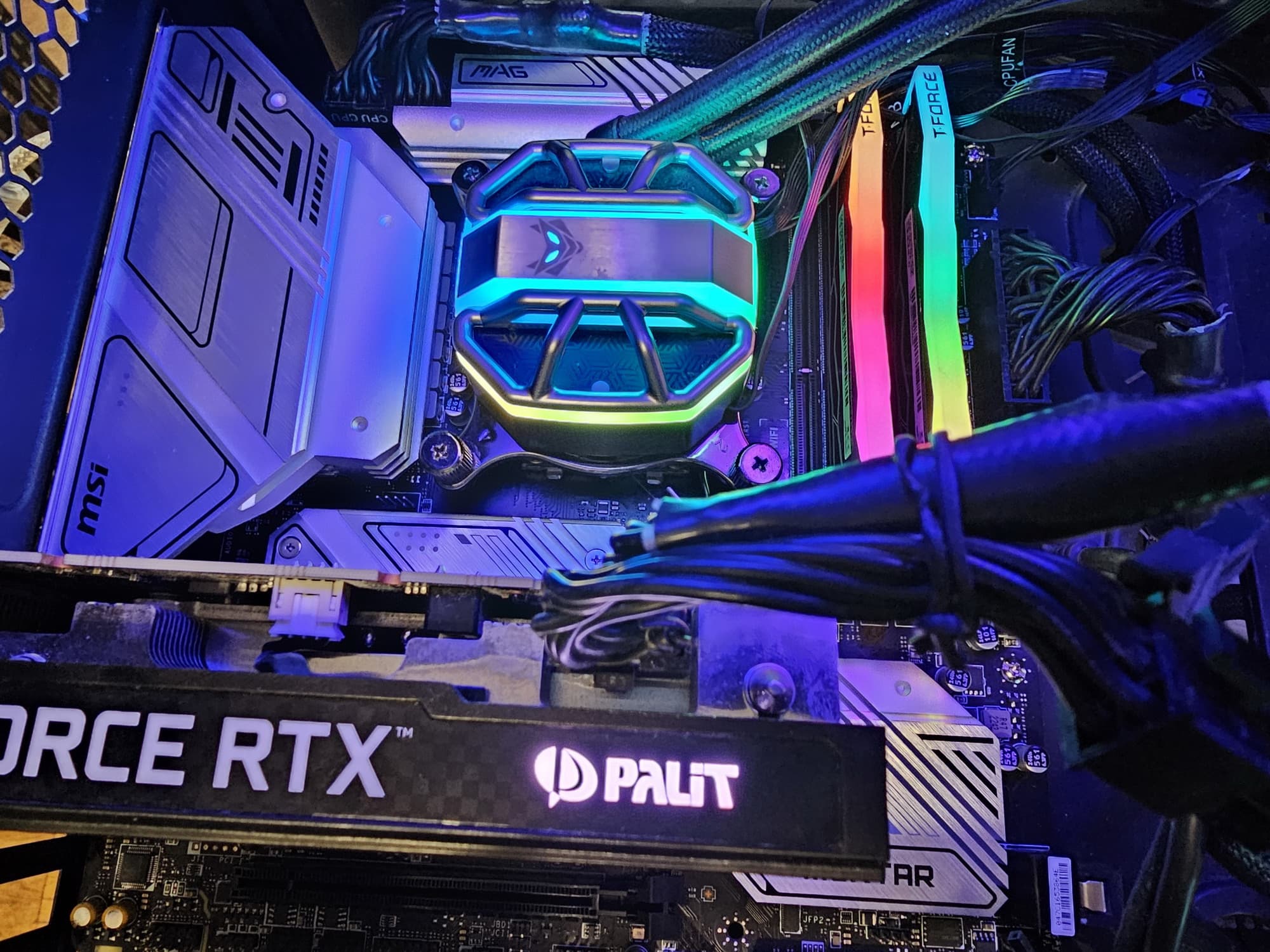 Еще у этой модели 4 порта SATA и 6 разъемов для вентиляторов. Хотя плата относится к относительно простой серии MAG, система питания процессора у нее очень мощная, она способна обеспечить работу любых совместимых процессоров с запасом на разгон. Также мы видим грамотную систему охлаждения каждого потенциально греющегося элемента, кроме накопителя в одном слоте M.2. Сетевые возможности хорошие: быстрый проводной контроллер 2,5 Гбит/с, а также один современный беспроводной. В числе плюсов платы можно упомянуть широкие возможности для подключения дополнительных ARGB/RGB-устройств подсветки.
