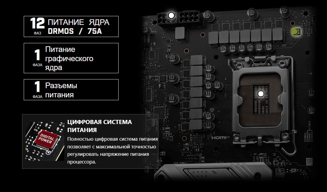 Выше мы изучили потенциальные возможности тандема B760+Core, а теперь посмотрим, что из этого и как реализовано в данной материнской плате.