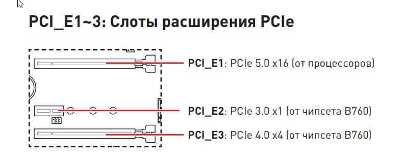 Чипсет B760 от B660 отличается только перераспределением количества поддерживаемых линий PCIe: 10 линий версии 4.0 и 4 линии версии 3.0, когда как у B660, соответственно, 6 и 8.