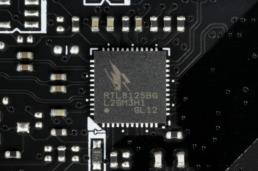 Материнская плата оснащена средствами связи хорошо. Имеется скоростной Ethernet-контроллер Realtek RTL8125BG, способный работать по стандарту 2,5 Гбит/с.