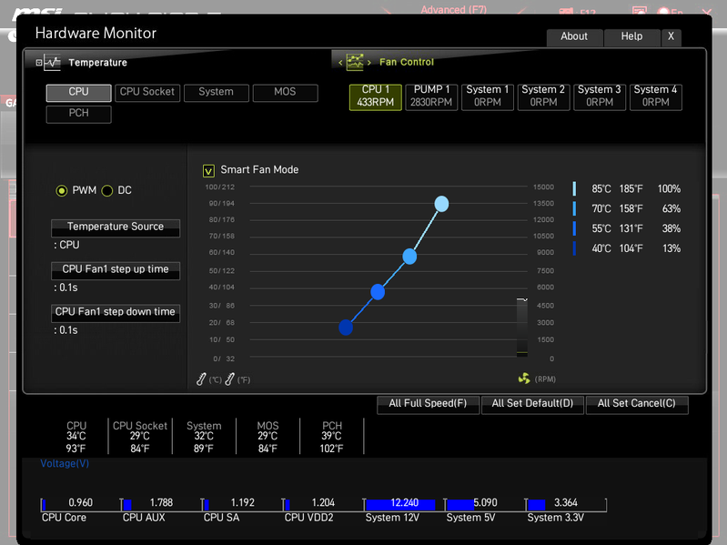 Запускаем все в режиме по умолчанию. Затем нагружаем стресс-тестом OCCT (настройки по умолчанию).