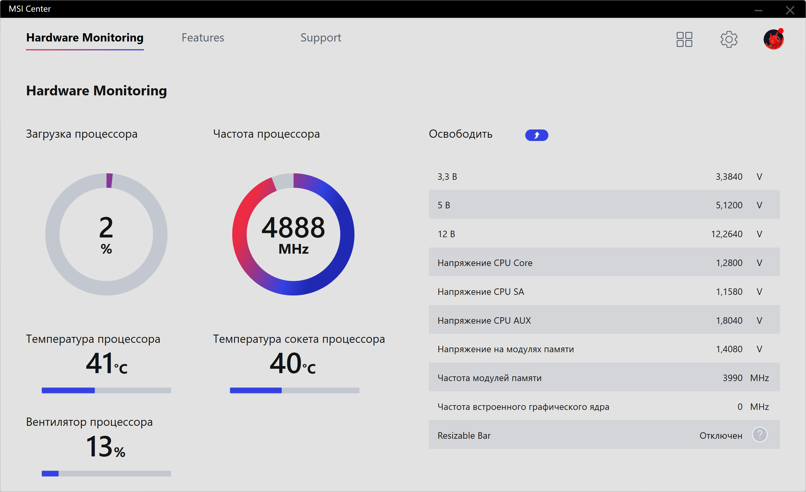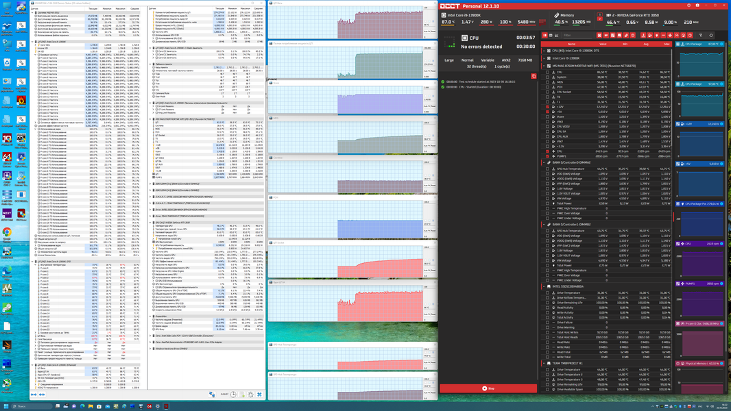 Скажу, что авторазгон весьма высокий, оно и логично: ведь система по умолчанию определяет возможности питания матплаты, а в данном случае система питания приличного уровня, несмотря на то, что подобные материнские платы явно не для самых топовых и требовательных процессоров, к которым относится Core i9-13900K. Что касается остальных параметров работы компонентов по нагреву, то все они были в норме..