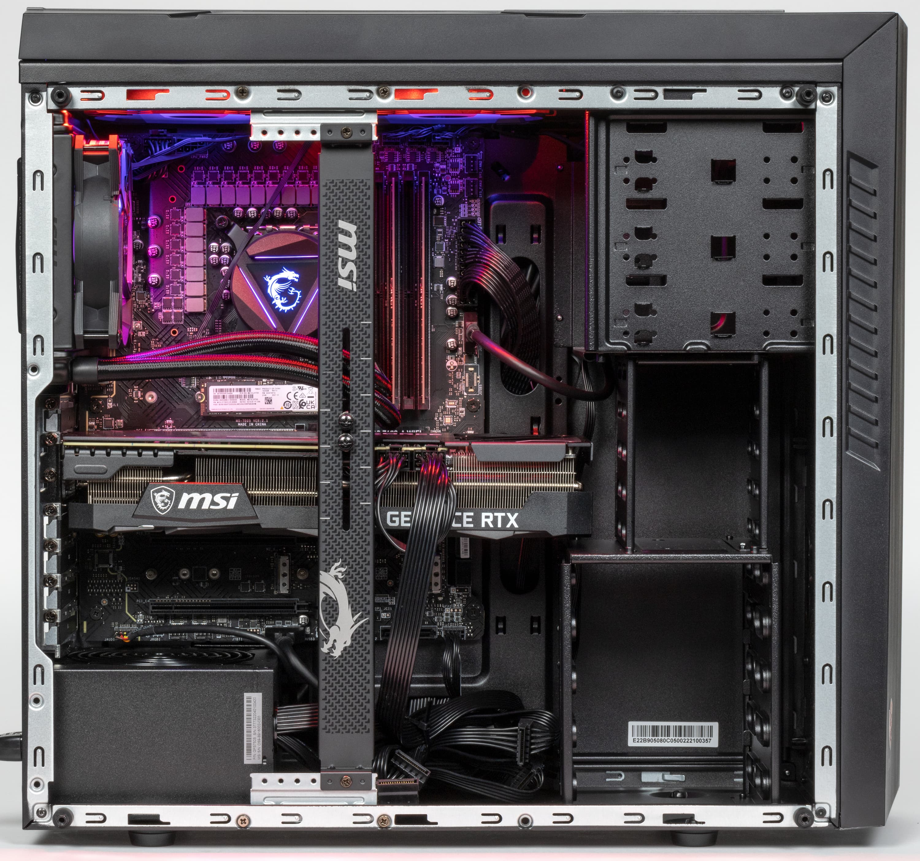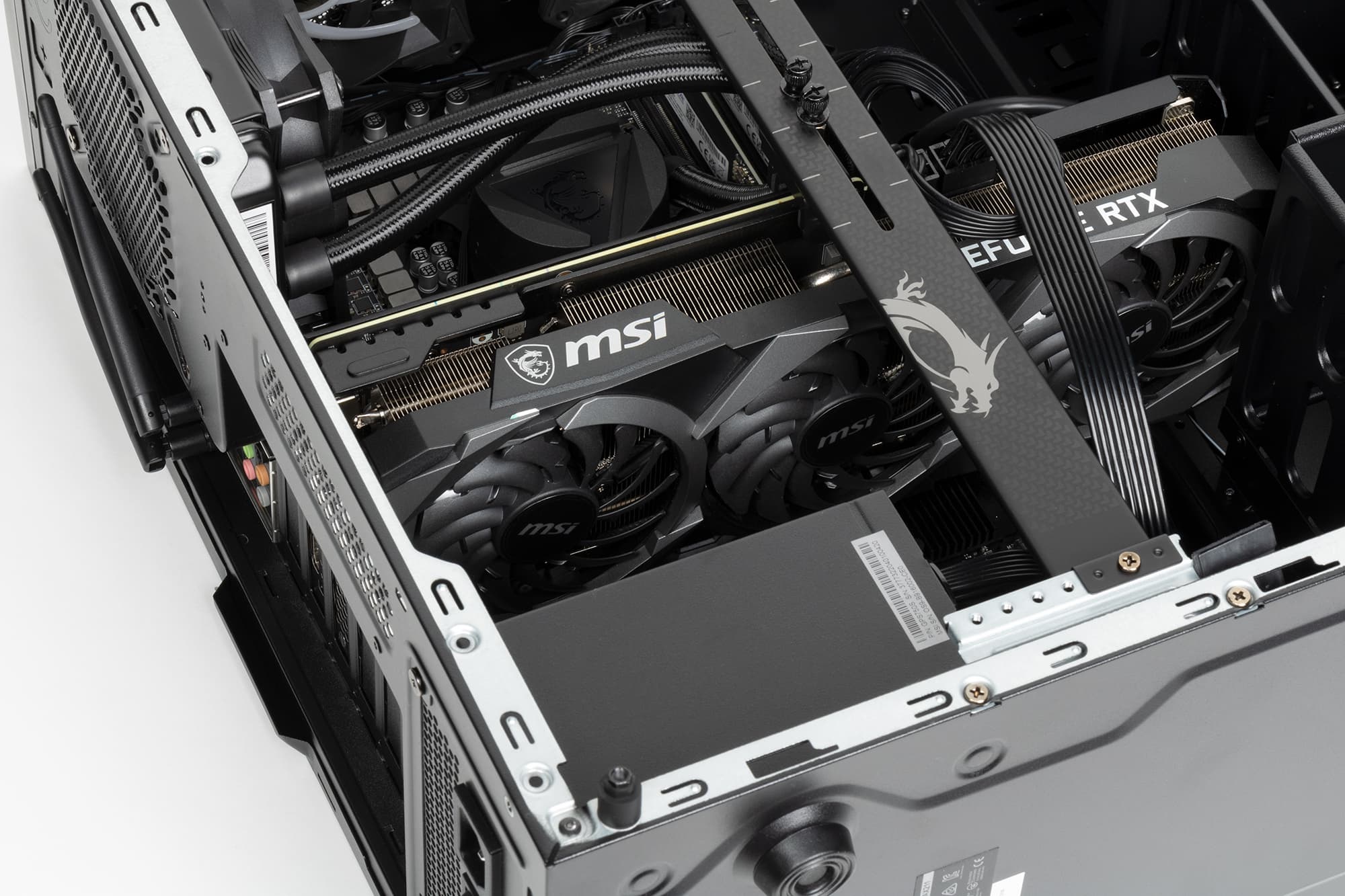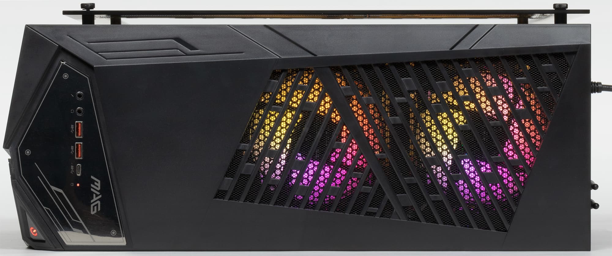 Конечно, в какой-то степени мы придираемся — все-таки это готовый ПК, а не корпус, который придется наполнять самостоятельно. К тому же и покупают компьютеры с RTX 3070 или 3080 не для того, чтоб вскоре их апгрейдить — а за несколько лет может произойти много всего. Но могло бы быть лучше — переработай компания дизайн корпусов этой серии. Тем более, длинные громоздкие видеокарты сюда так и просятся — благодаря дополнительной «распорке», позволяющей их поддерживать безо всяких смешных подпорок.