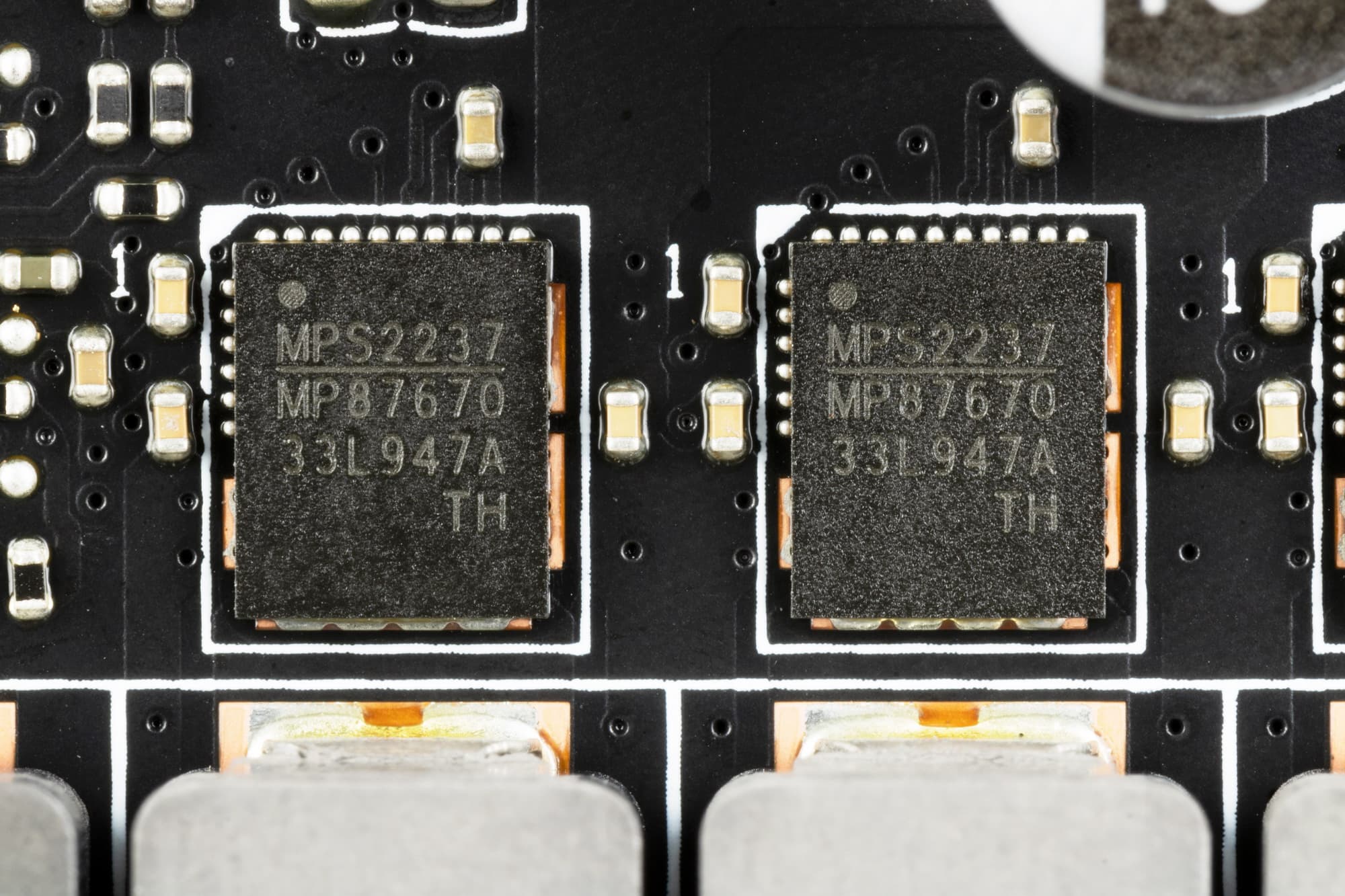 Каждый канал фазы VCore и SoC имеет суперферритовый дроссель и транзисторную сборку MP87670 от Monolith Power Systems (до 70A).