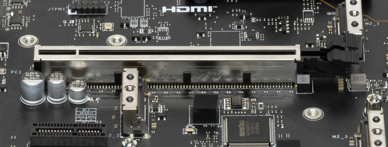 Второй, третий и четвертый слоты M.2 (M.2_2, M.2_3, M.2_4) получают данные от чипсета X670E (PCIe 4.0), а первый — от CPU (PCIe 5.0). При этом все слоты работают с модулями только с PCIe интерфейсом. M.2_2, M.2_3, M.2_4 поддерживают размеры модулей: 2260/2280, а слот М.2_1 поддерживает размеры 2280/22110.