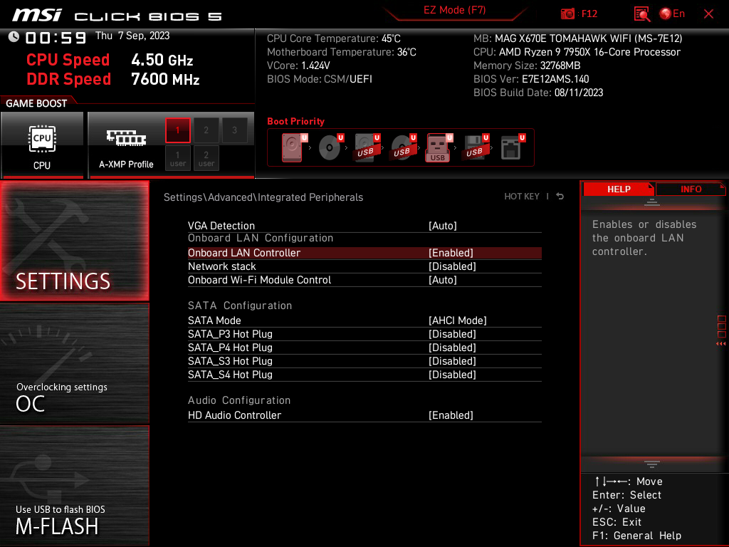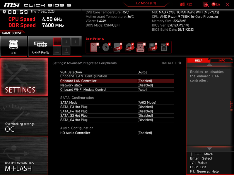 Герой нынешнего обзора — MSI MAG X670E Tomahawk WiFi. То есть материнка из семейства MAG (MSI Arsenal Gaming), которая относится к нижнебюджетным среди игровых решений (ну по сути самым простым), однако все равно являет собой отличный инструмент для современного ПК, обладая широкими возможностями как по набору периферии, так и по возможностям питания.