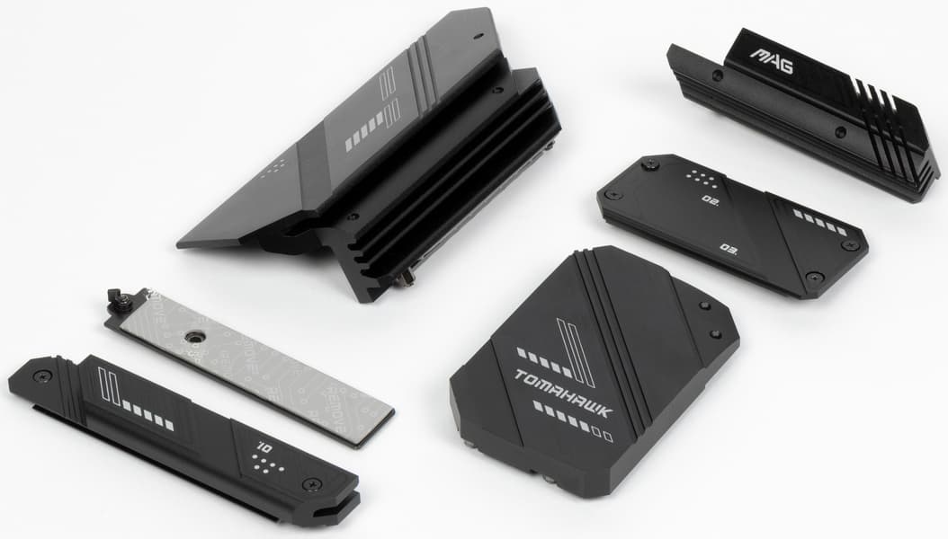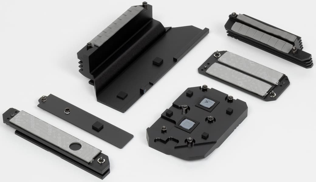 Не все M.2 слоты имеют радиаторы. M.2_1 обладает отдельным радиатором (причем с возможностью двухстороннего охлаждения модуля SSD), когда как M.2_2 и M.2_3 имеют общий радиатор. А слот M.2_4 – без штатного охлаждения.