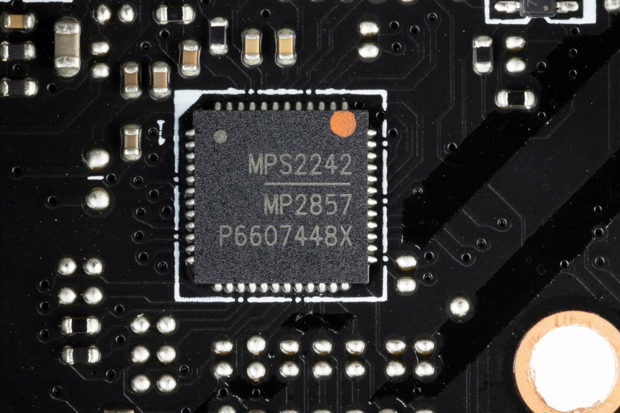 Управляет схемой питания VCore и SoC ШИМ-контроллер MP2857 от того же MPS, рассчитанный максимум на 12 фаз.