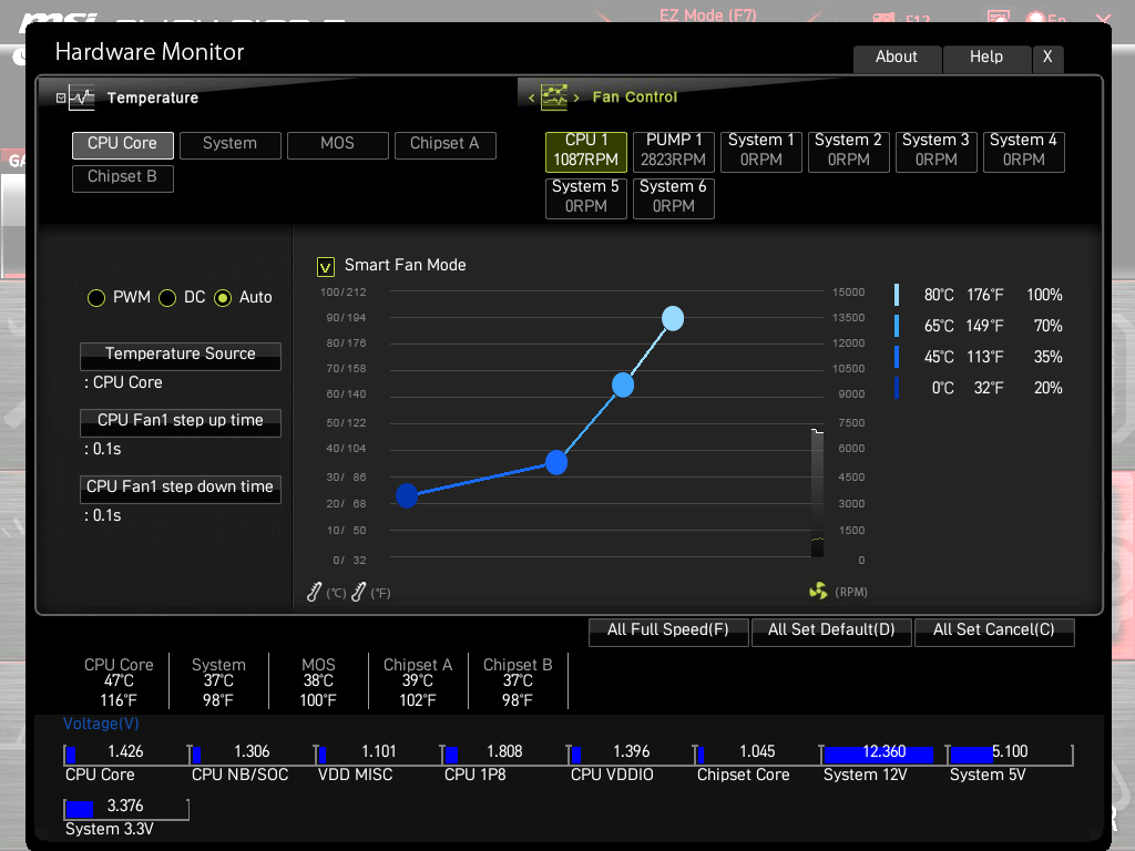 С учетом того, что эта матплата – не оверклокерская, относится к самому простому семейству игровых плат MAG, такого авторазгона более чем достаточно.