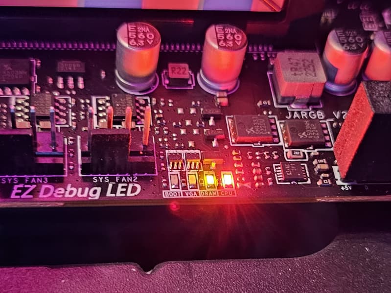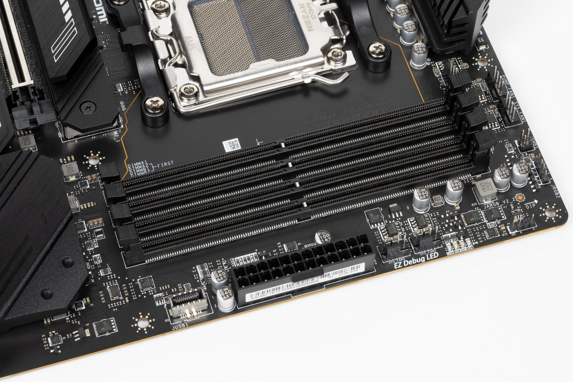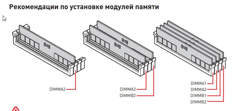 Для установки модулей памяти на плате имеется четыре DIMM-слота (для работы памяти в Dual Channel в случае использования всего 2 модулей их следует устанавливать в А2 и B2). Плата поддерживает небуферизованную память DDR5, а максимальный объем памяти составляет 192 ГБ. Поддерживаются профили XMP и Expo, а также емкости модулей 24 и 48 ГБ (следует только обновить BIOS).
