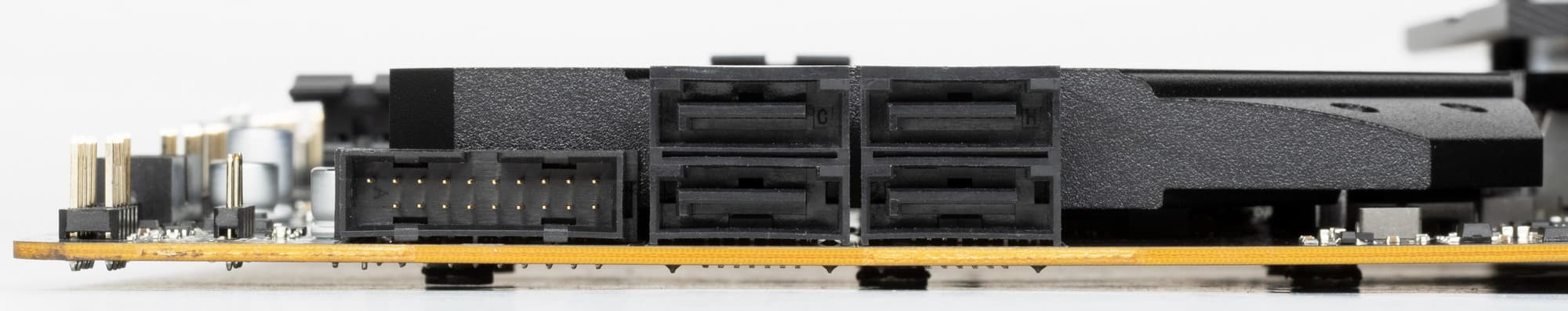Всего у платы 4 разъема Serial ATA 6 Гбит/с + 4 слота для накопителей в форм-факторе M.2.