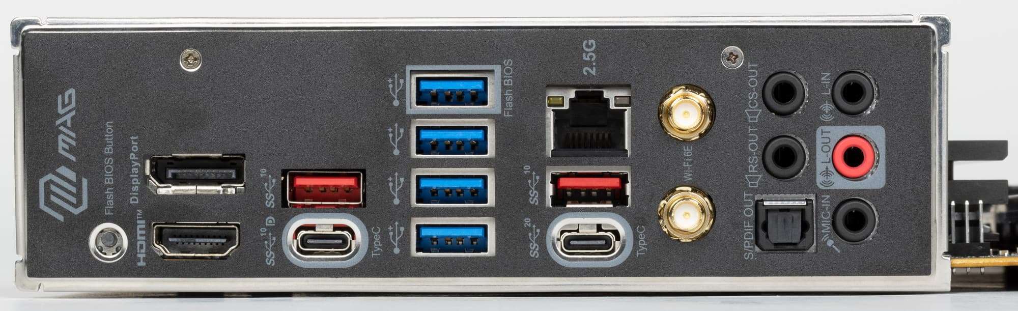 | Разъемы на задней панели | 1 × USB 3.2 Gen2 (Type-C) 2 × USB 3.2 Gen2 (Type-A) 4 × USB 3.2 Gen1 (Type-A) 1 × USB 3.2 Gen2x2 (Type-C) 1 × RJ-45 5 аудиоразъемов типа миниджек 1 × S/PDIF (оптический, выход) 1 × HDMI 2.1 1 × DP 1.4a 2 антенных разъема кнопка перепрошивки BIOS — Flash BIOS |