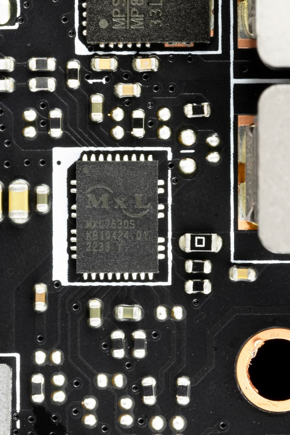 1 фаза питания графического ядра образована также суперферритовым дросселем и сборкой от MXL7630 от MaxLinear на 30 А.