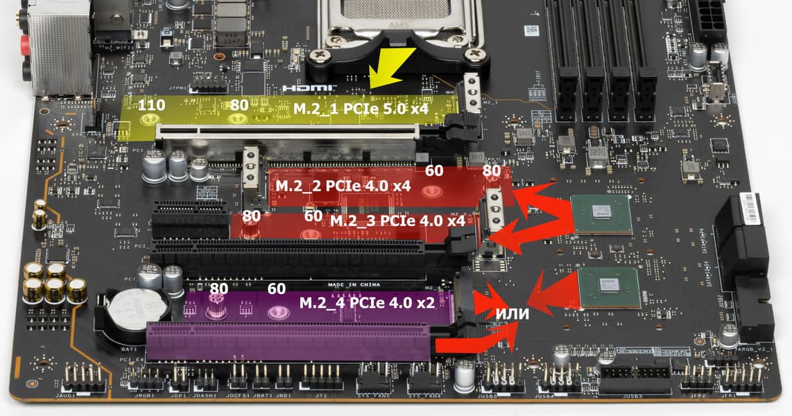 - Слот M.2_3 (4 линии PCIe 4.0);