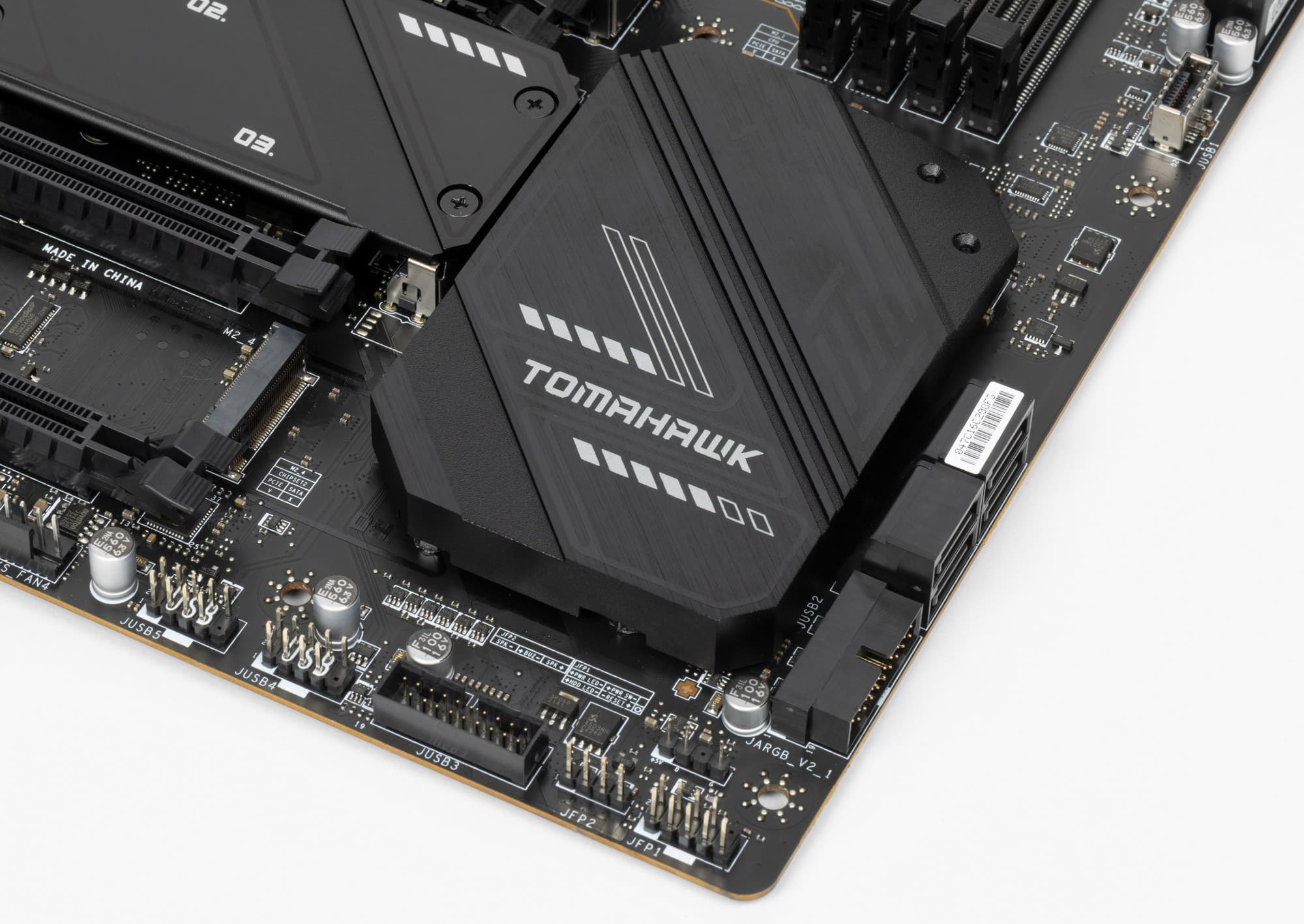 MSI MAG X670E Tomahawk WiFi поставляется в стандартной коробке. Комплект размещен под платой в отдельном отсеке.
