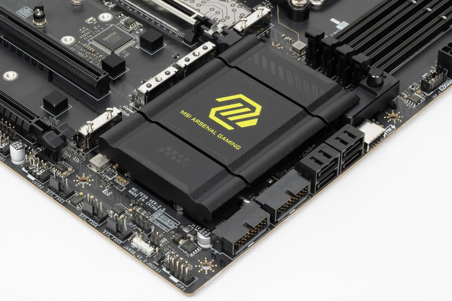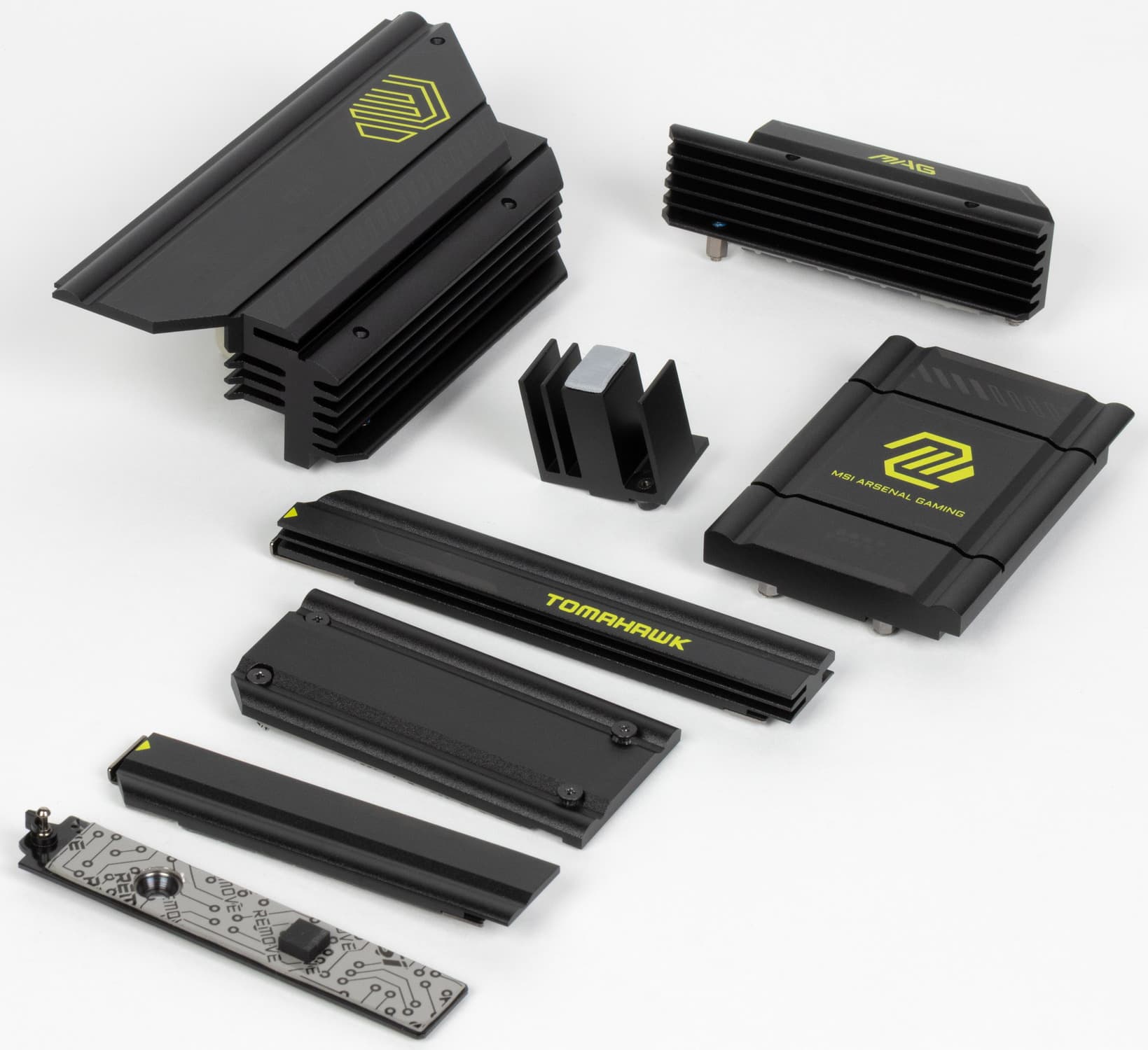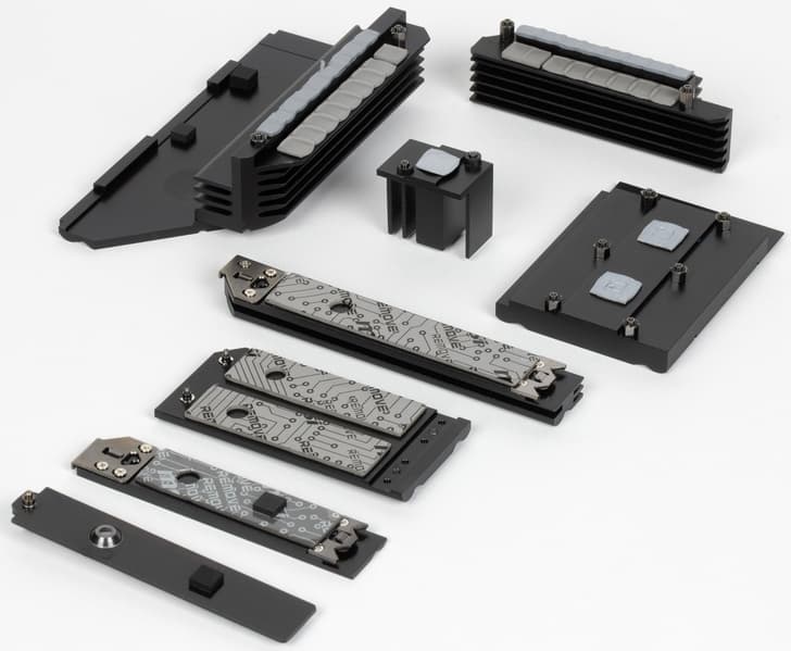 Все M.2 слоты имеют радиаторы. Верхний M.2_1 и нижний M.2_4 обладают отдельными радиаторами, когда как остальные слоты M.2 имеют общий радиатор. Также слот M.2_1 кроме верхнего радиатора еще имеет радиатор для охлаждения тыльной стороны модулей.