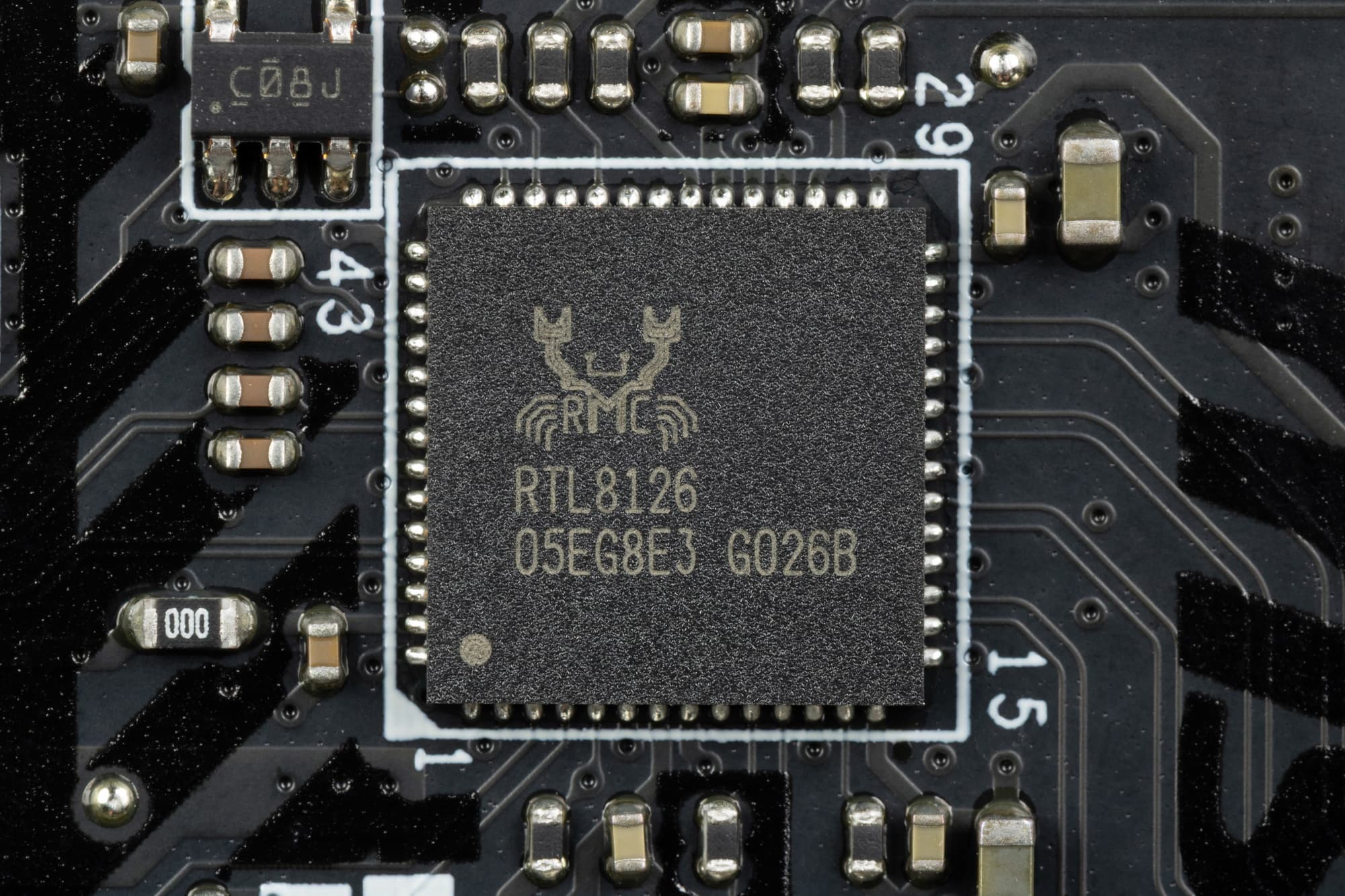 Материнская плата оснащена средствами связи отлично. Имеется два скоростных Ethernet-контроллера. Один Realtek RTL8126, способный работать по стандарту 5 Гбит/с.