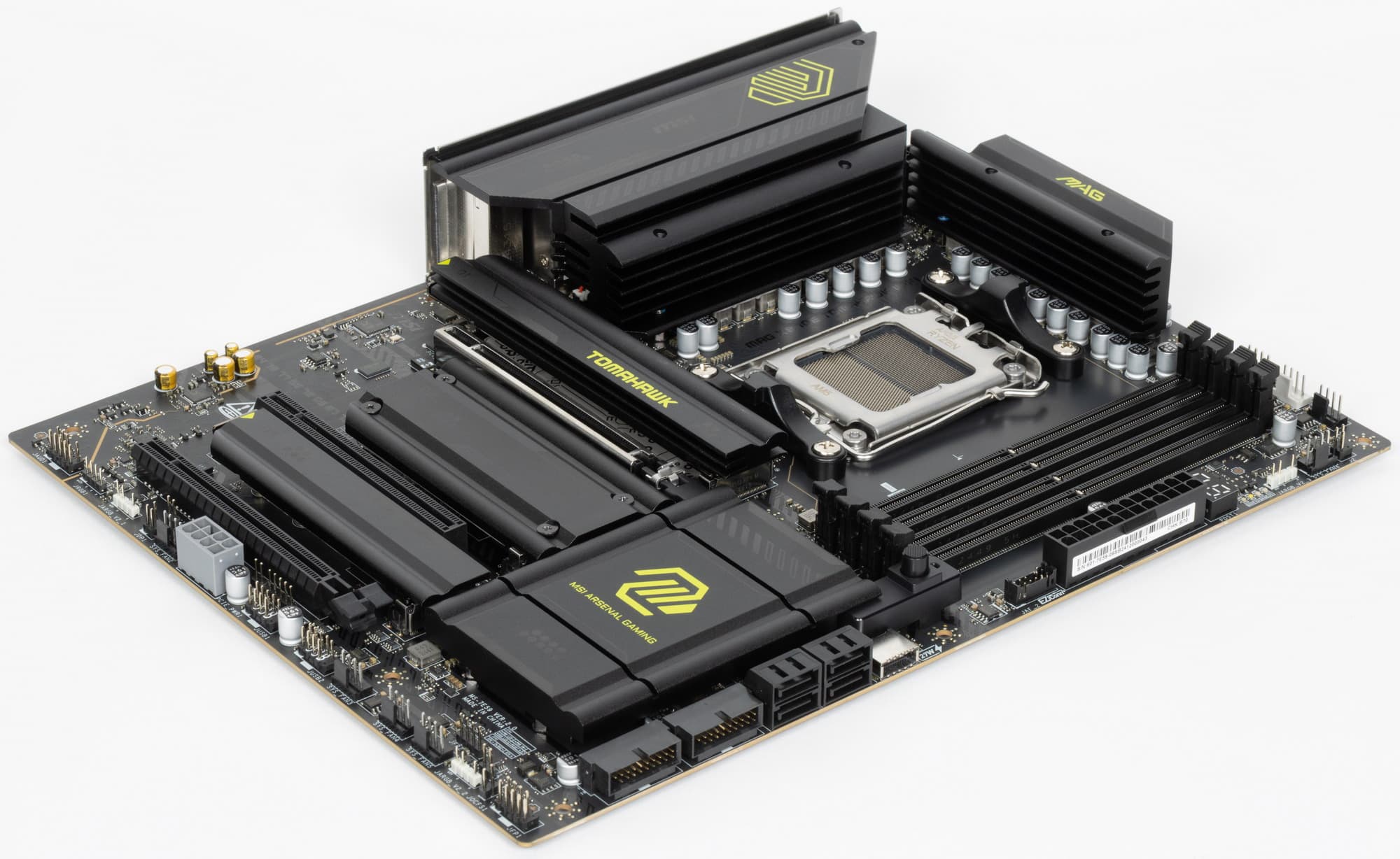 Сегодня материнской платой на новом чипсете X870E, попавшей к нам в лабораторию, стал продукт компании MSI, а именно MSI MAG X870E Tomahawk WiFi. Эта матплата относится к игровой серии MAG (MSI Arsenal Gaming), которая стоит на третьем месте после MEG (MSI Extremal Gaming). Собственно, поэтому данная плата, хоть и игровая, но среднебюджетного уровня.