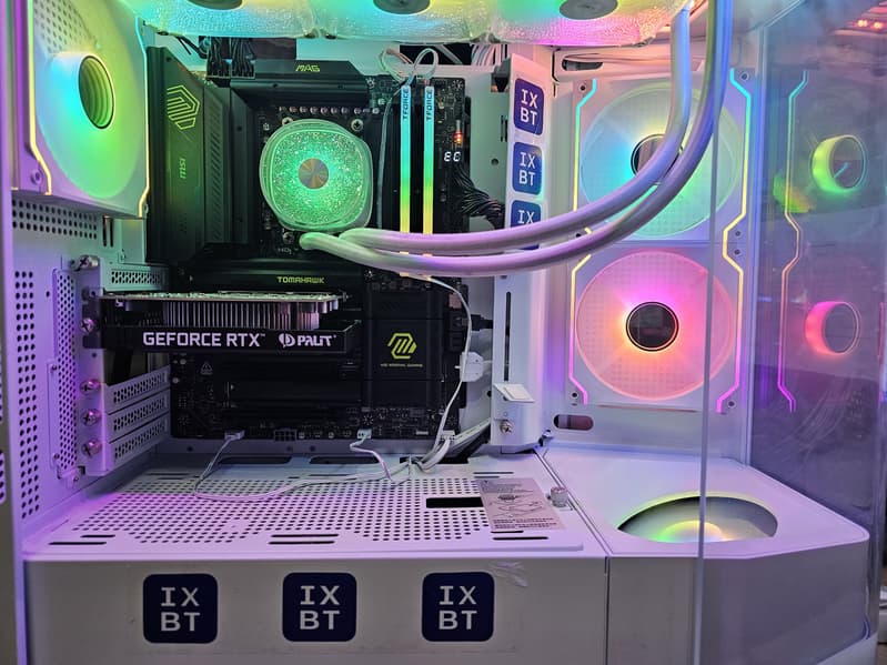 В арсенале платы также есть 4 порта SATA и 8 разъемов для вентиляторов. Система питания процессора достаточно мощная, способная обеспечить работу любых совместимых процессоров с приличным запасом на разгон. Плата имеет грамотную систему охлаждения каждого потенциально греющегося элемента, включая накопители в слотах M.2. Сетевые возможности включают проводной контроллер 5 Гбит/с и один самый современный беспроводной — Wi-Fi 7 + Bluetooth 5.4. В числе плюсов платы можно упомянуть широкие возможности для подключения дополнительных RGB-устройств.