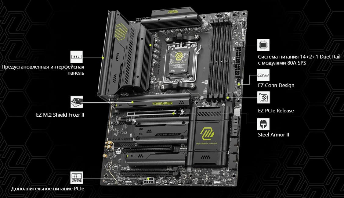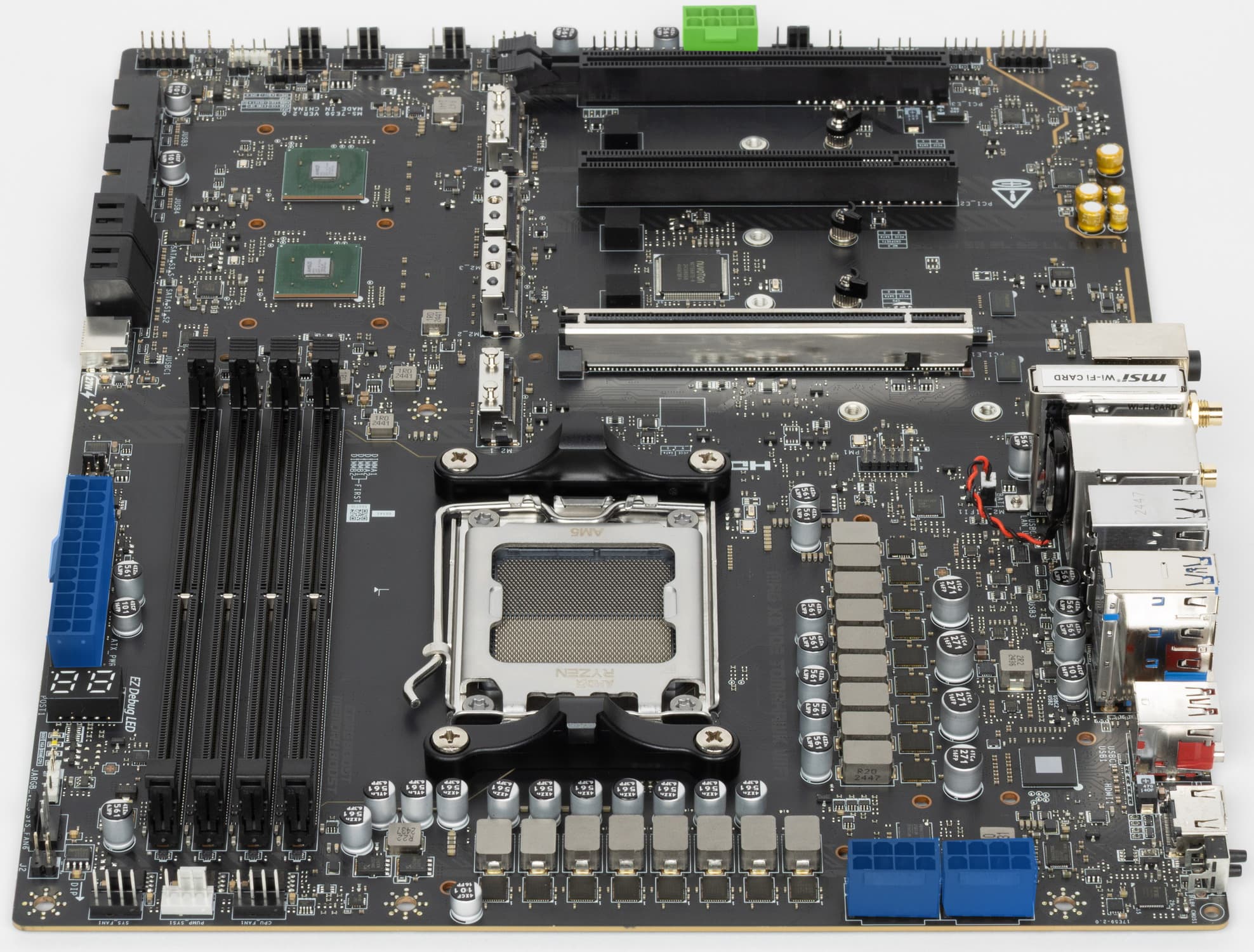 Плата MSI поддерживает процессоры AMD поколений 7xxx/8xxx/9xxx, выполненные под разъем (сокет) AM5.
