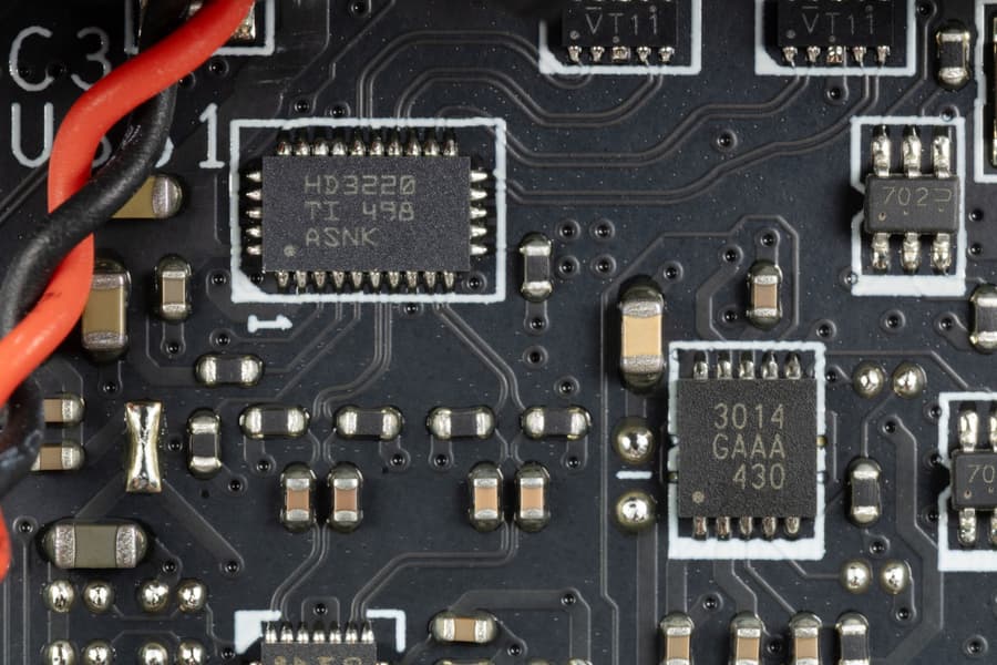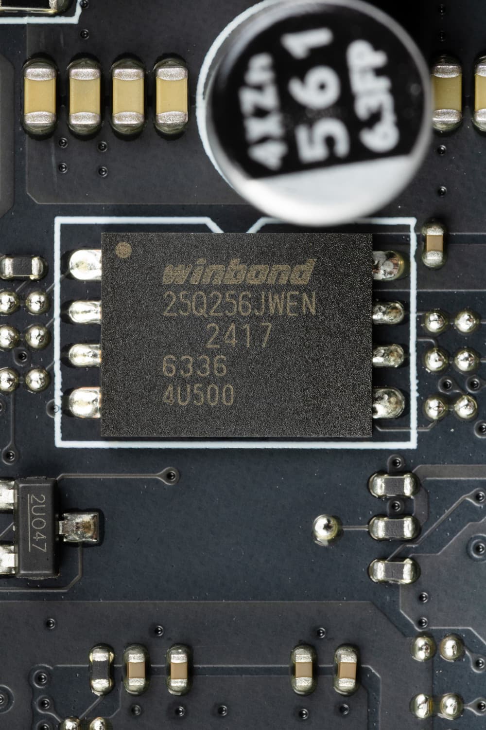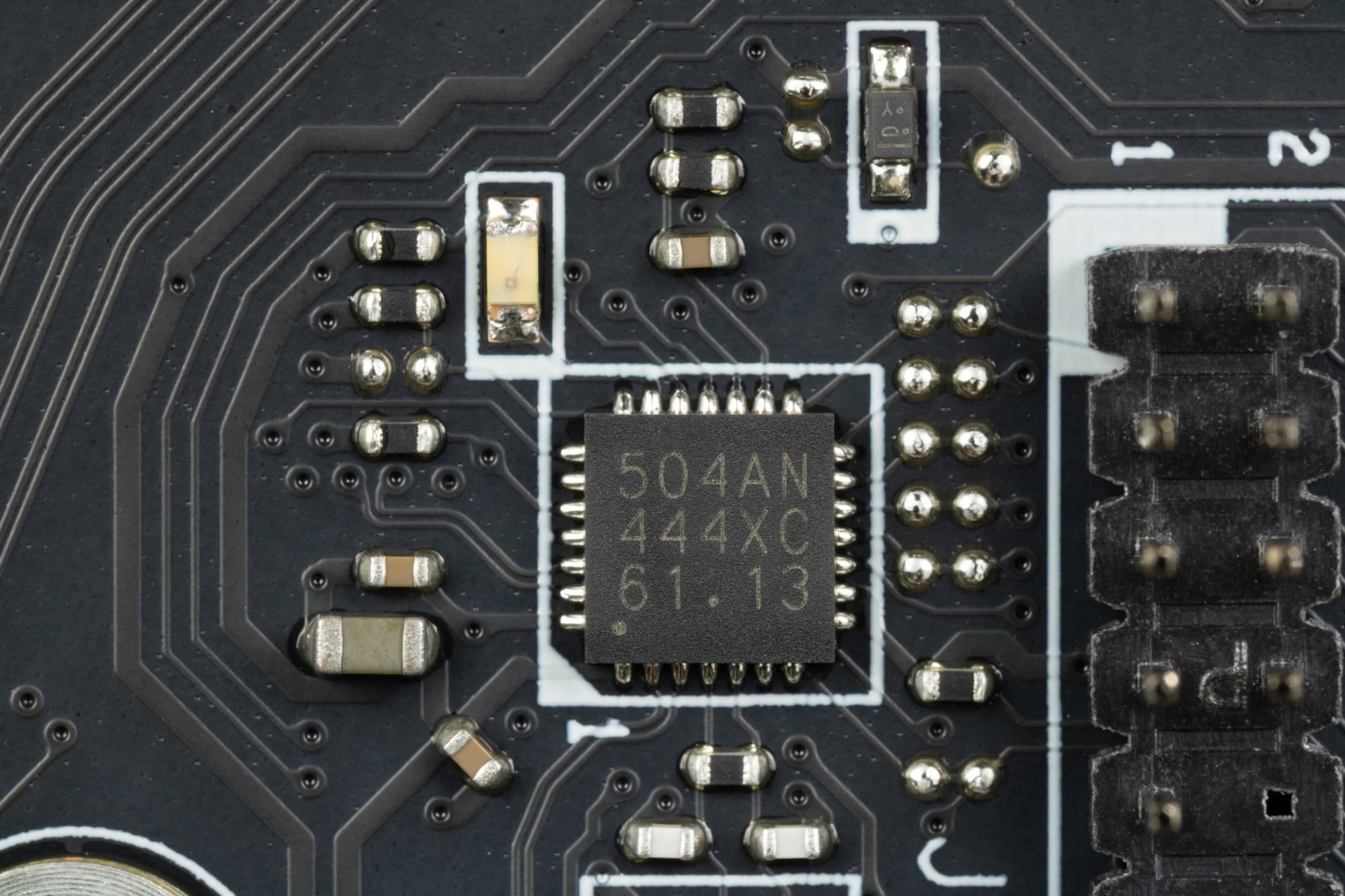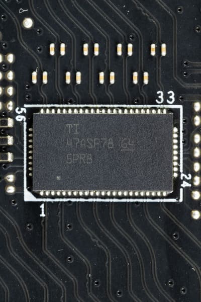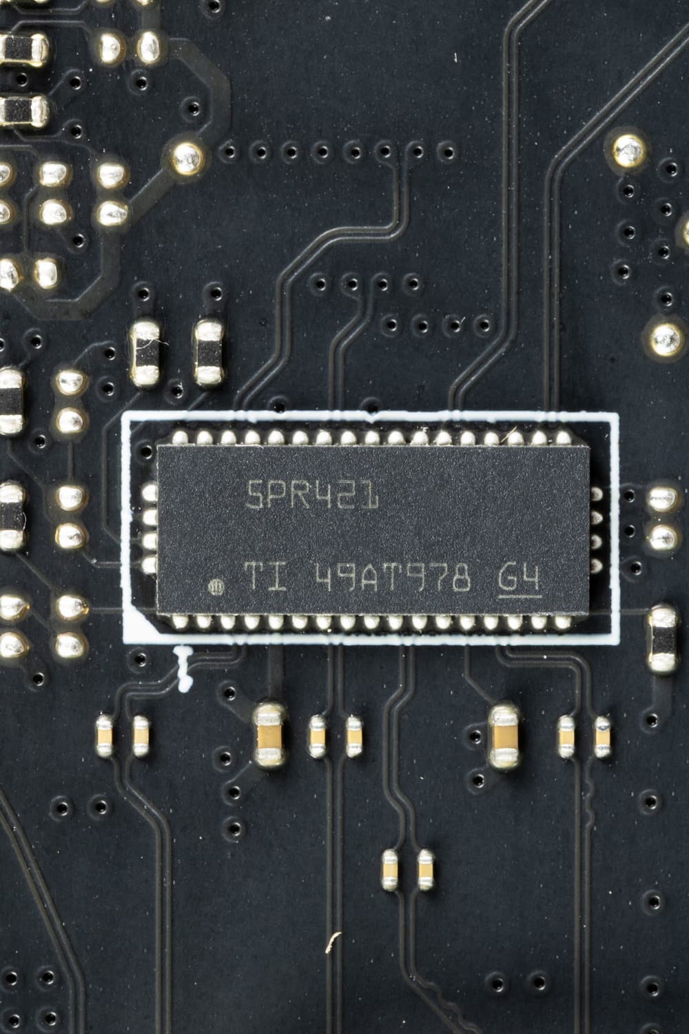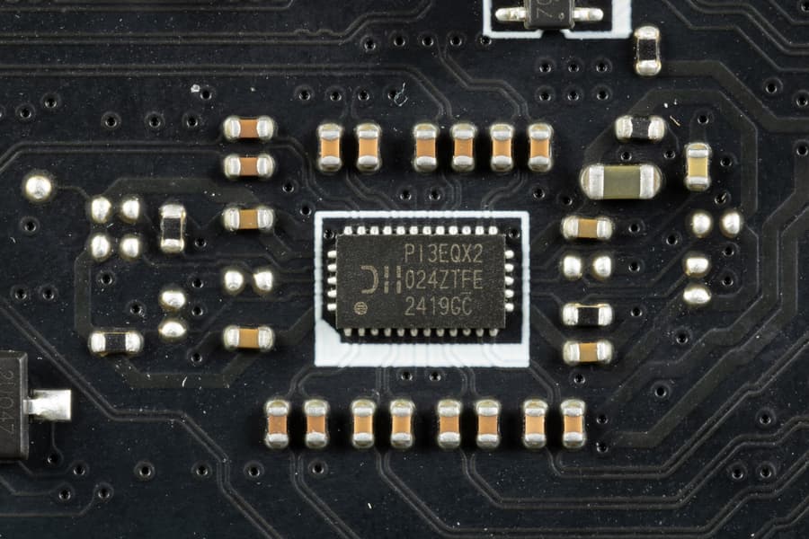 Для более стабильной работы на матплате имеются усилители (ре-драйверы) сигнала PCIe 4.0 от Texas Instruments.