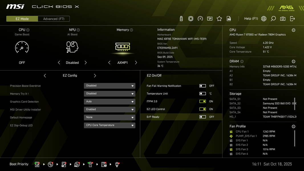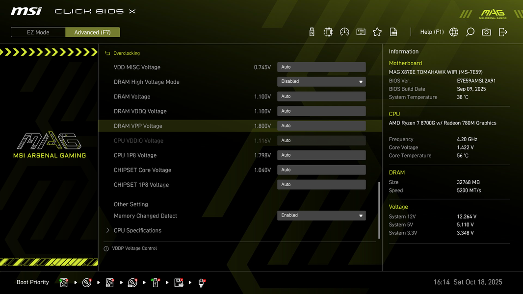 Плата поддерживает небуферизованную память DDR5, а максимальный объем памяти составляет 256 ГБ. Поддерживаются профили XMP и Expo.